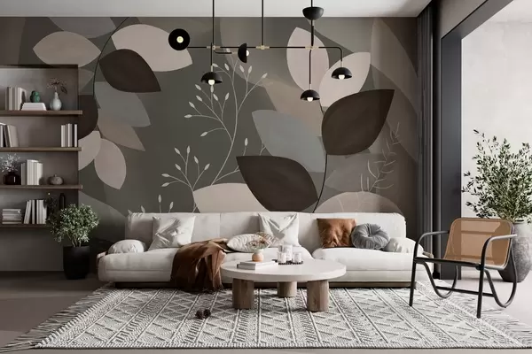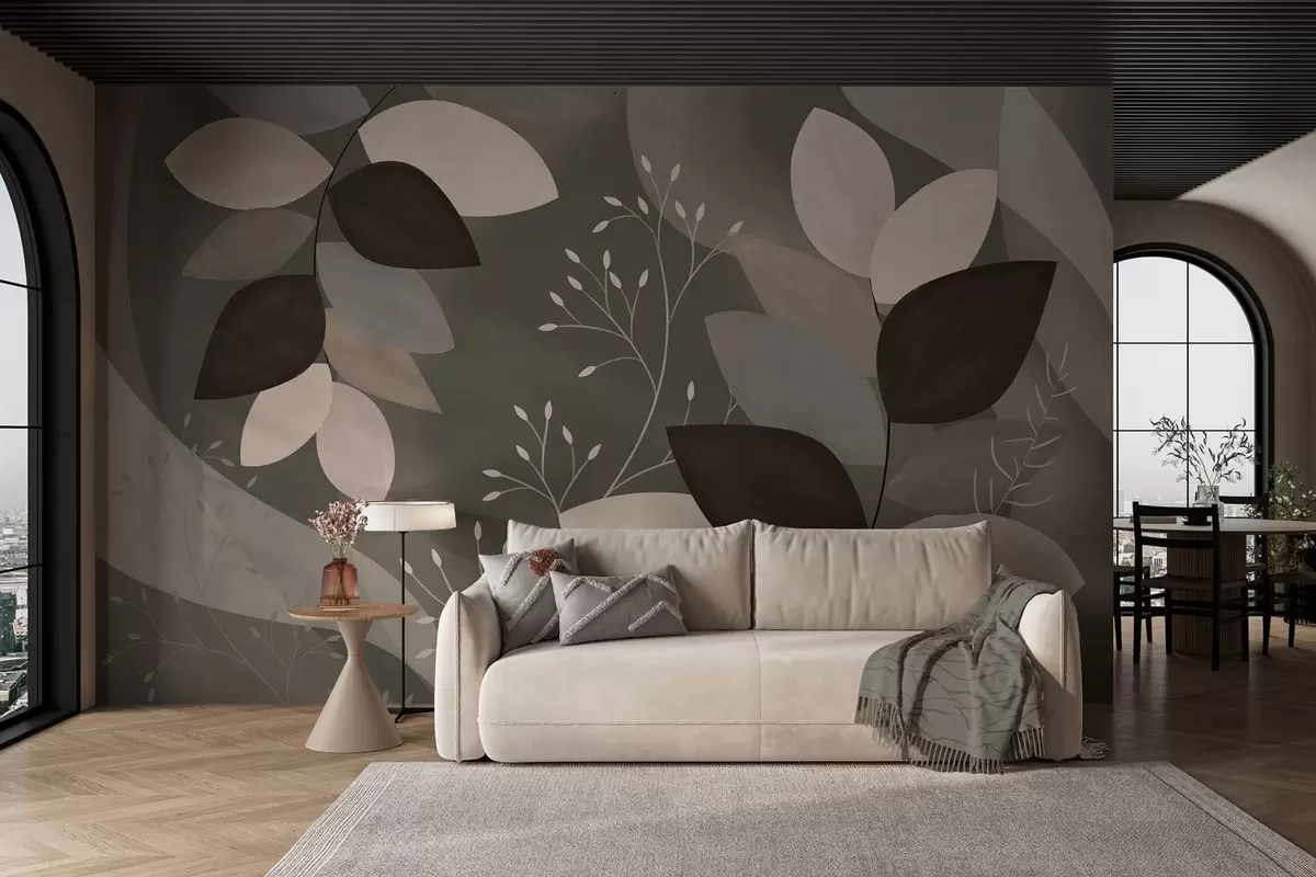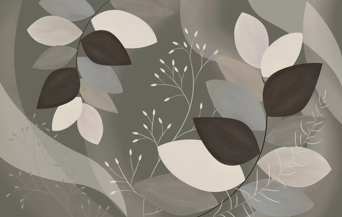 Papel tapiz hojas y hierbas en tonos oscuros Nr. w05237v1