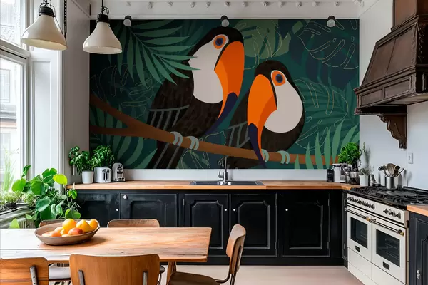 Papel tapiz una pareja de tucanes en una rama, con estilo afro Nr. w05239