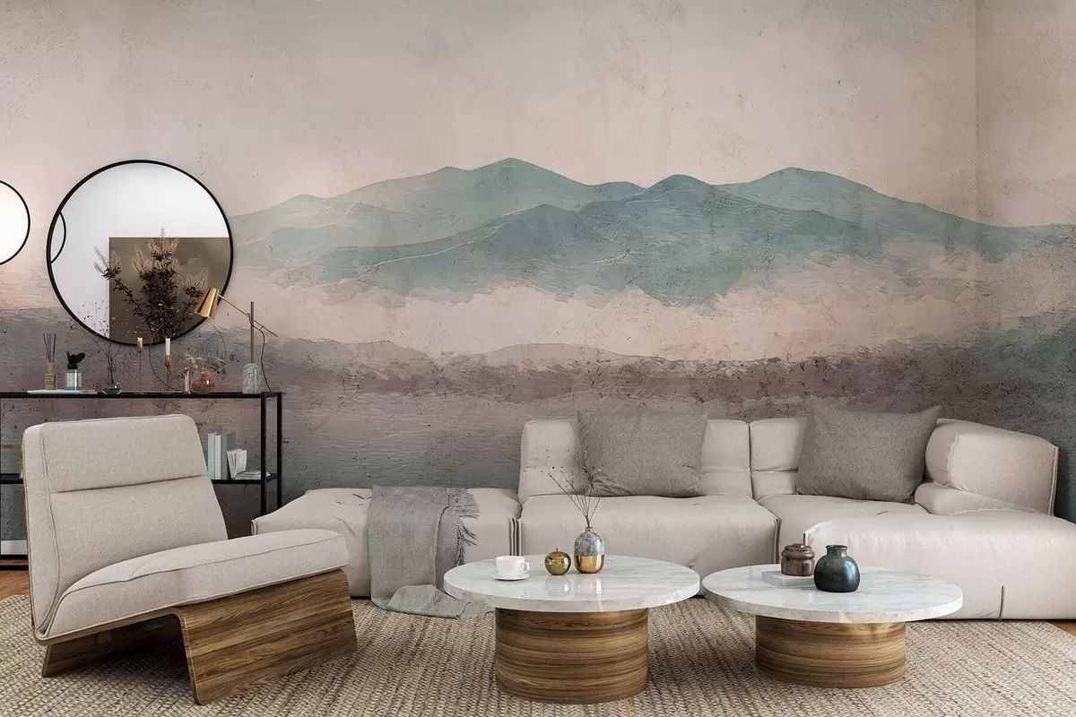 Papel tapiz Paisaje montañoso pintado con estilo grunge Nr. w05241