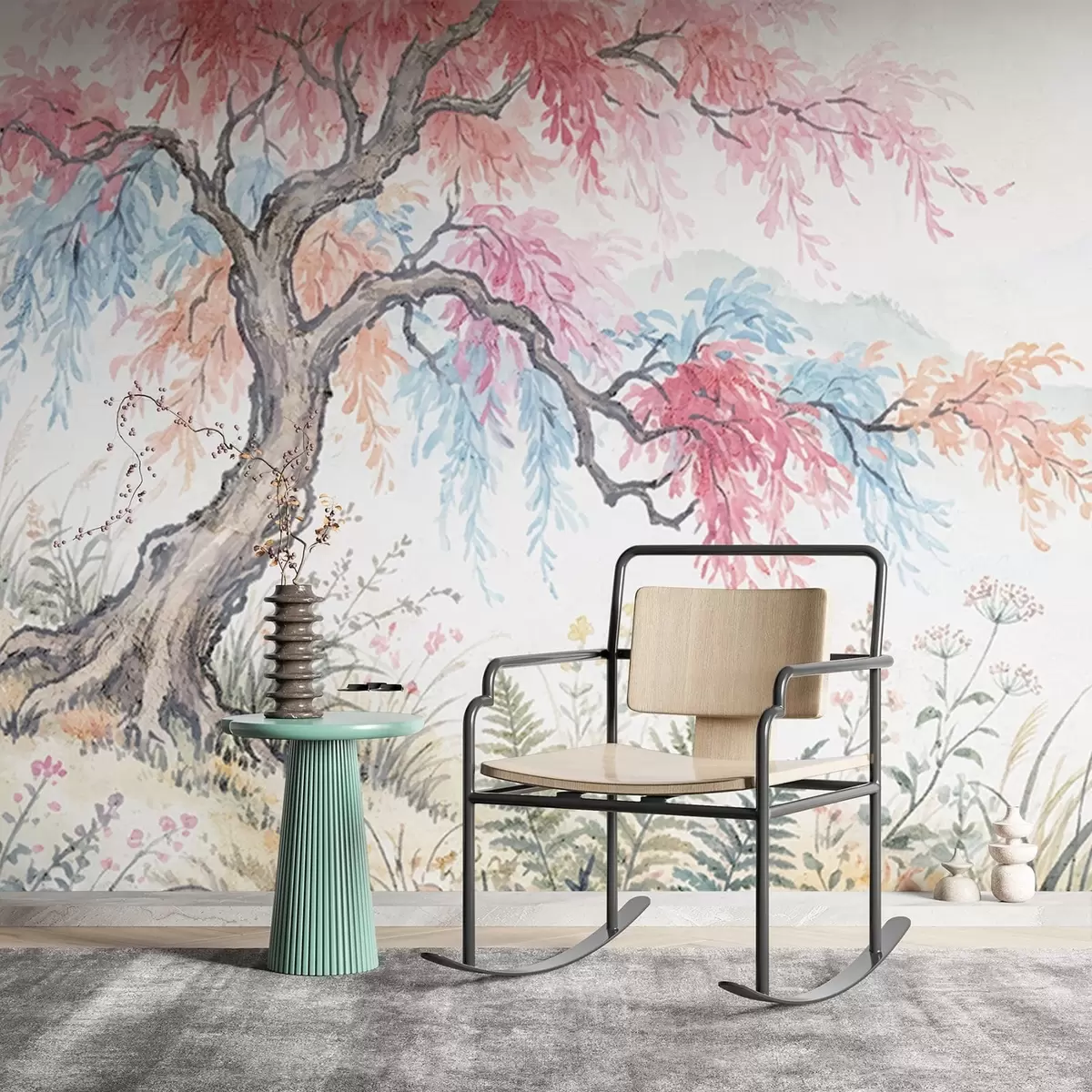Papel tapiz Jardín pintado con colores vivos en un muro de hormigón. Nr. w05246