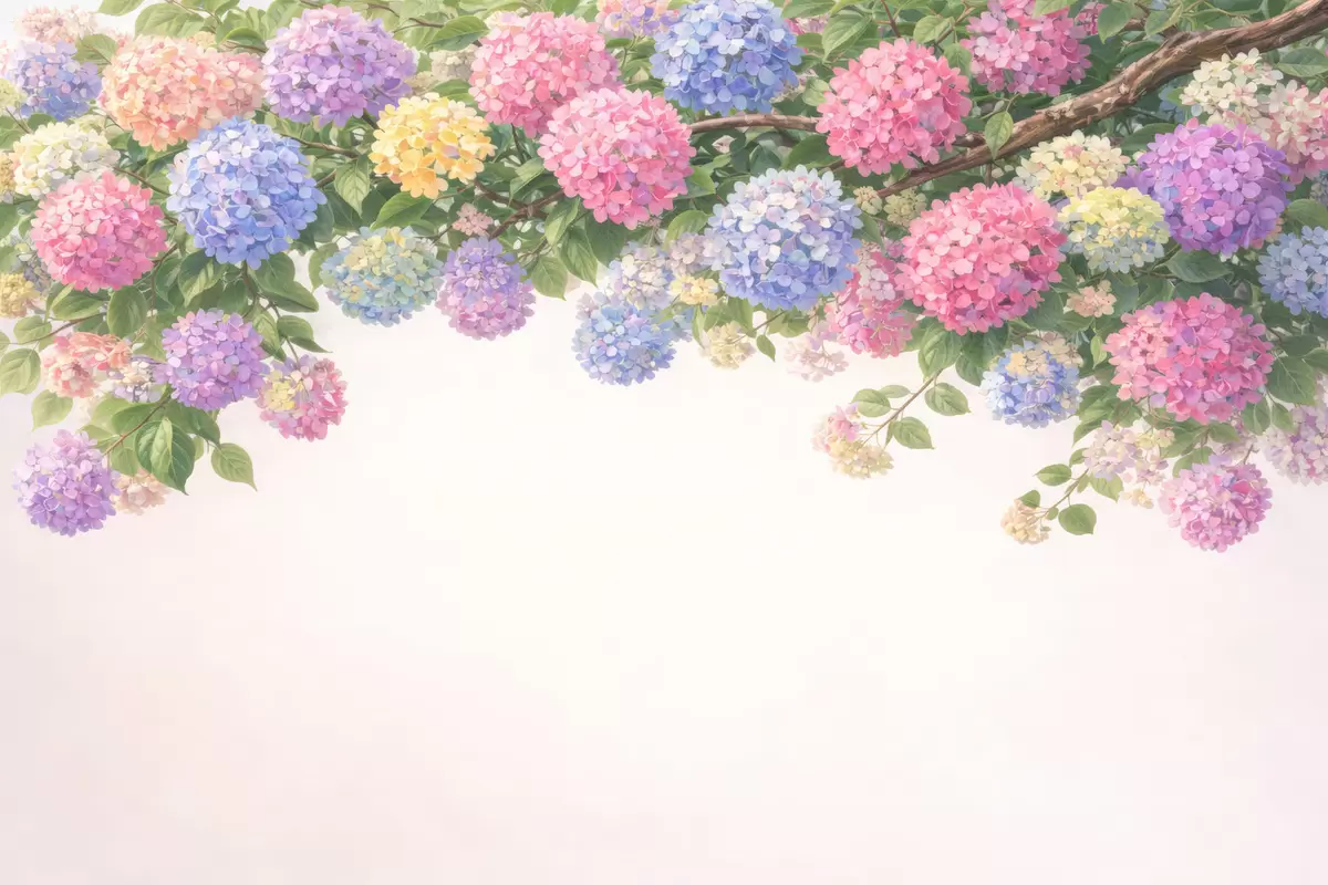 Papel tapiz Hortensias pintadas cuelgan hacia abajo. Nr. w05250