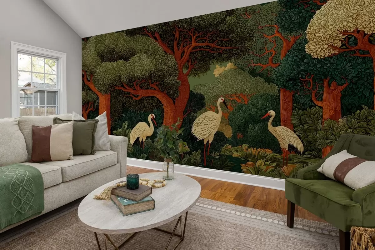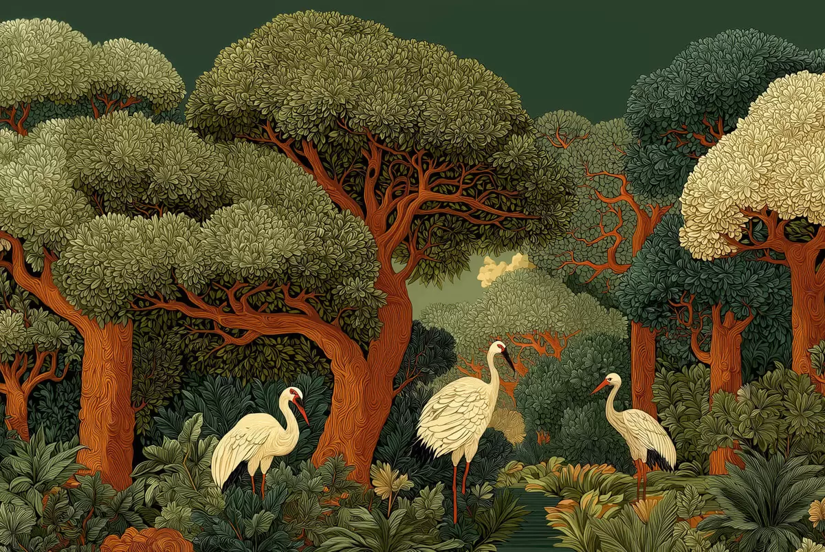 Papel tapiz Bosque con grullas Nr. w05259