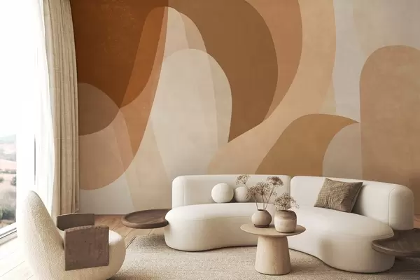 Papel tapiz curvas abstractas en tonos marrones, beige y rojizos Nr. w05387