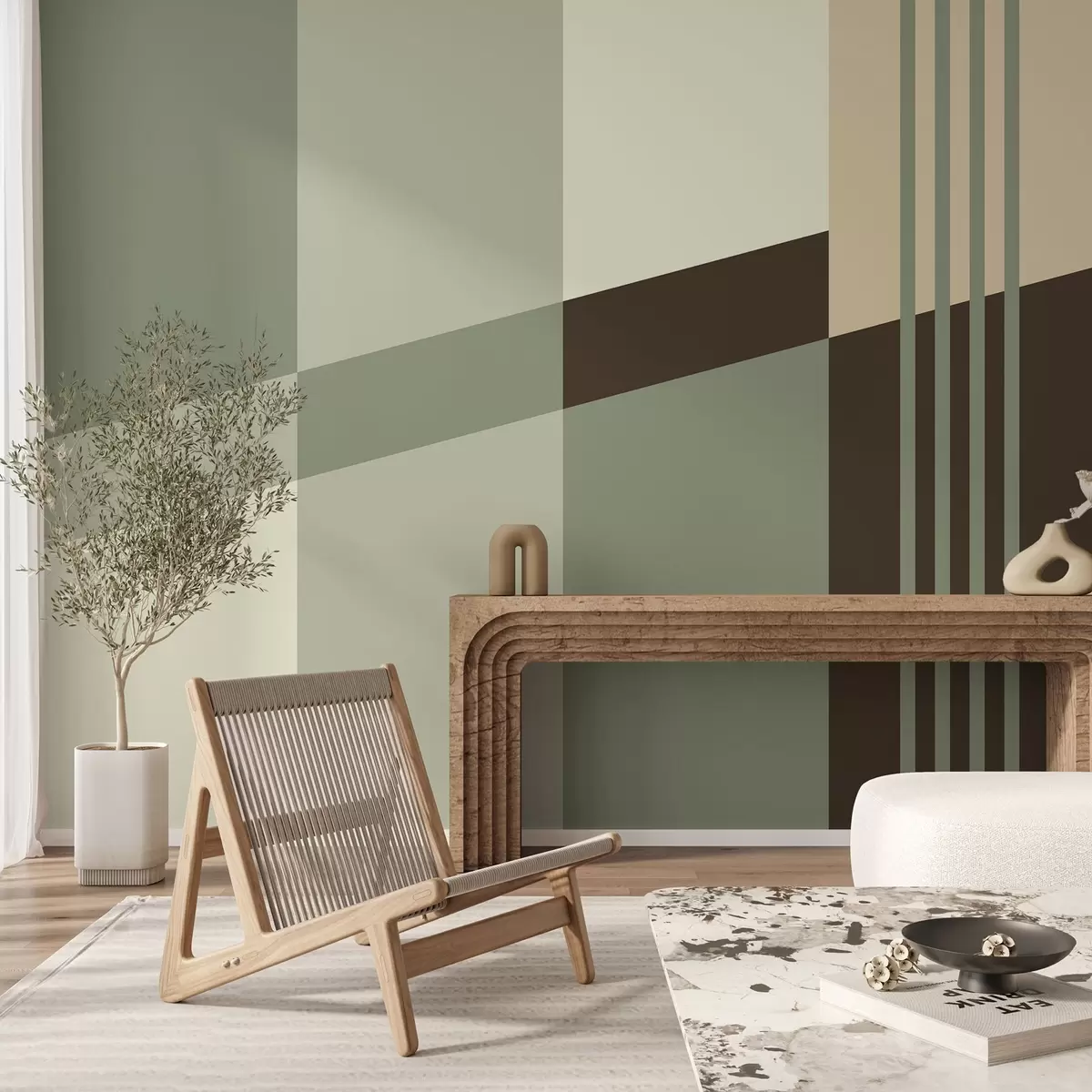 Papel tapiz Diseños geométricos discretos en tonos oliva, beige y marrón Nr. w05390