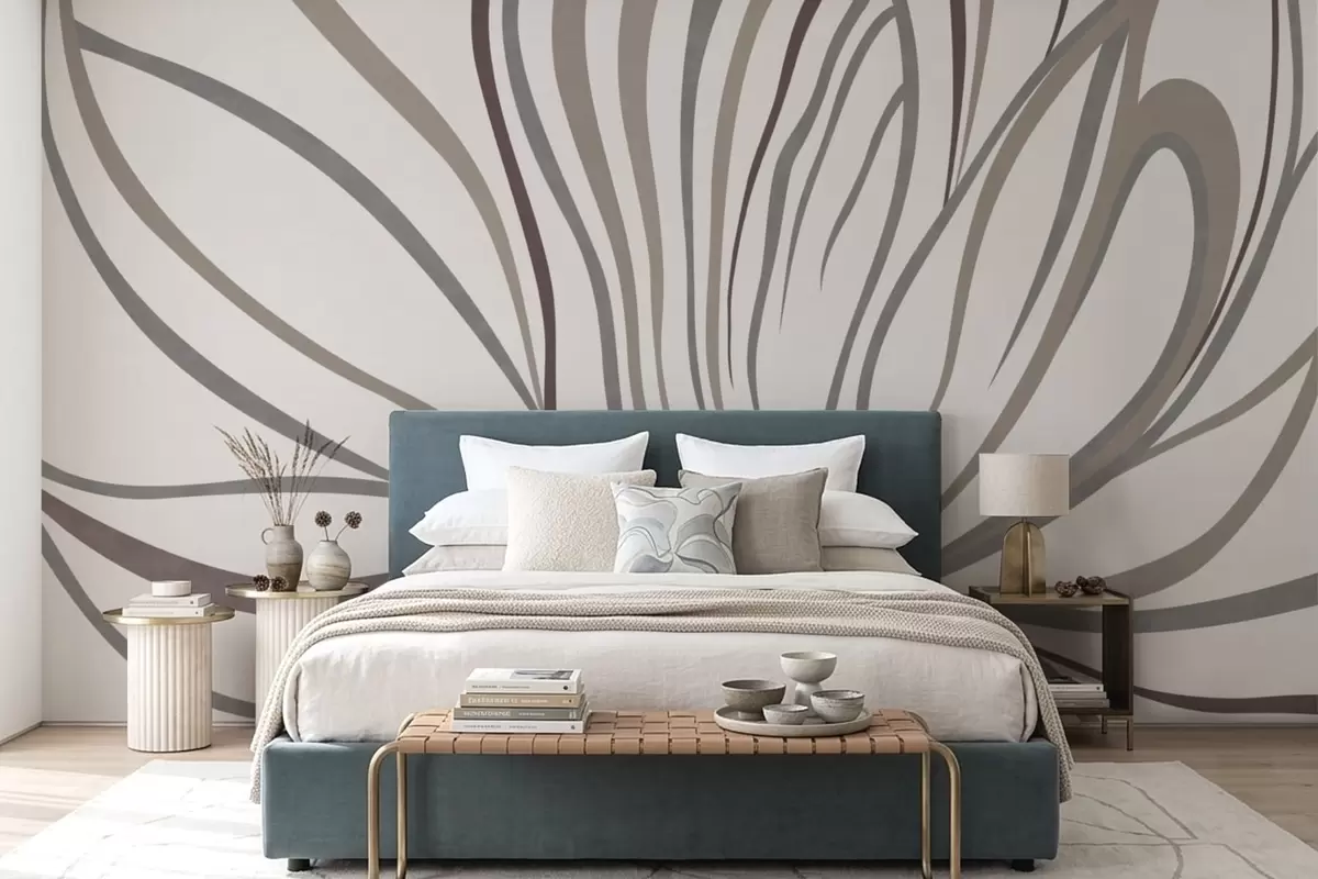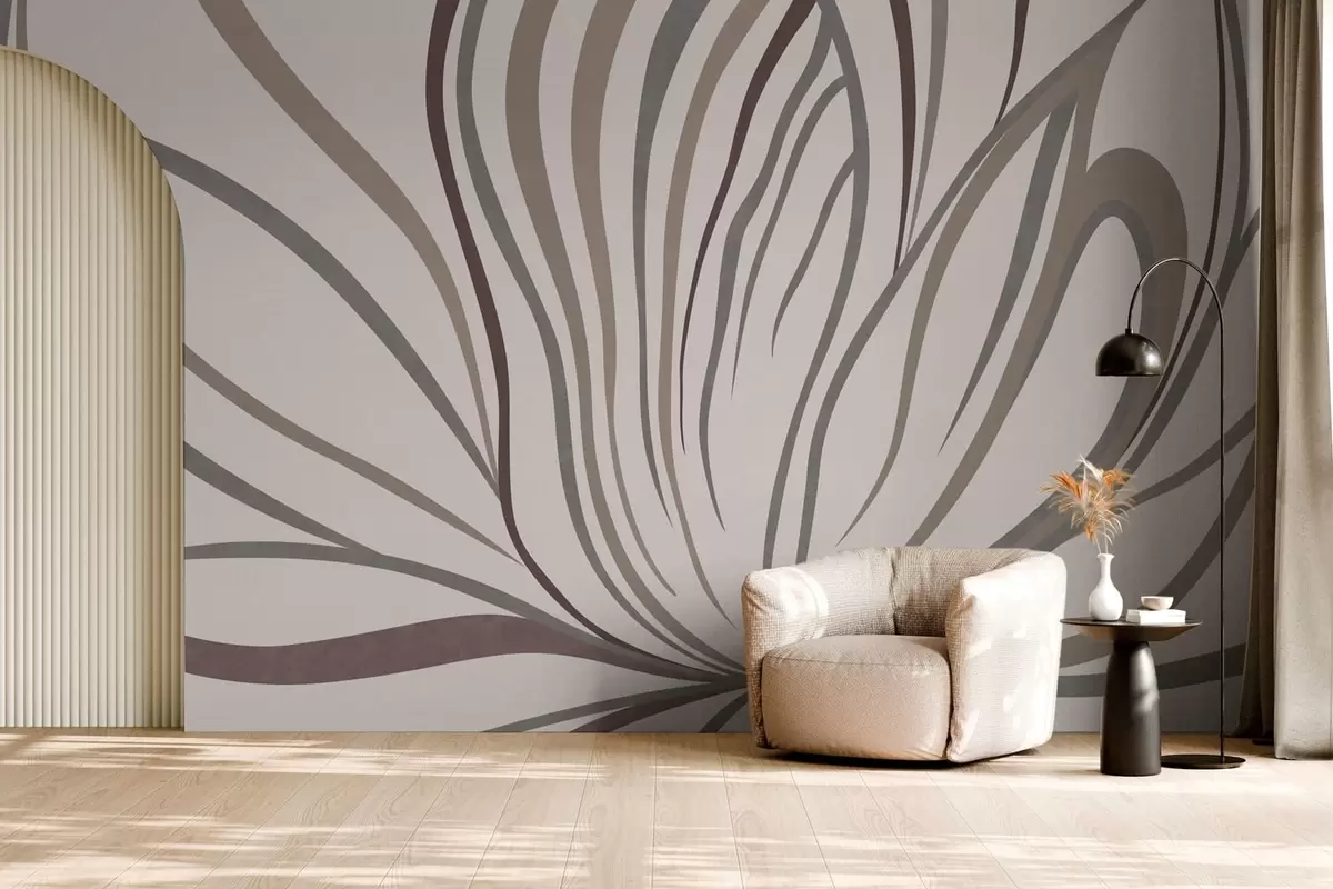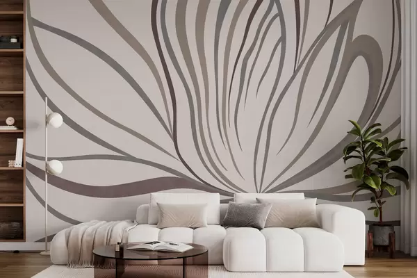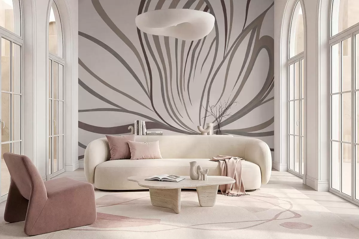 Papel tapiz Flor abstracta con líneas en tonos grises y rosas Nr. w05392