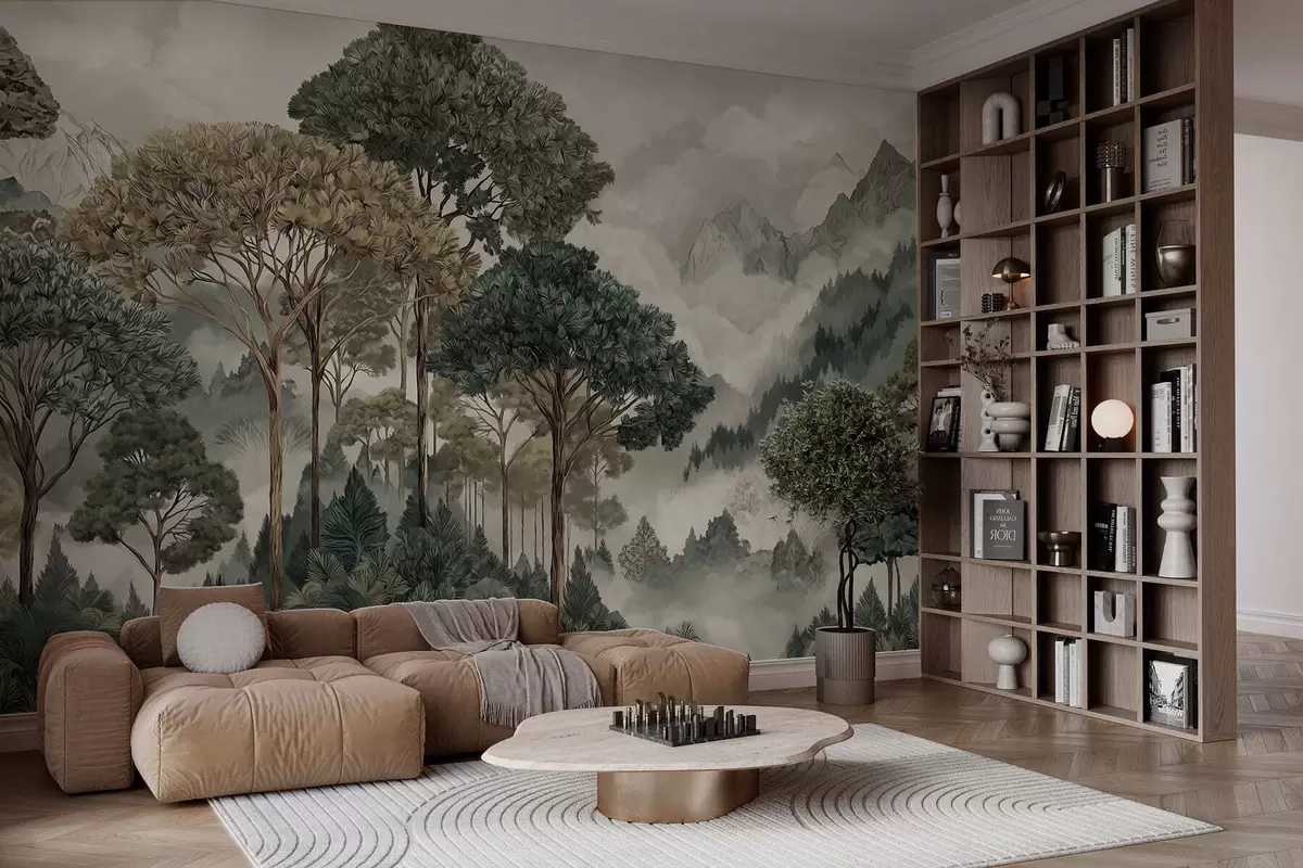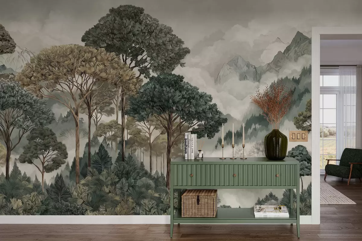 Papel tapiz Paisaje montañoso con bosque en tonos suaves Nr. w05410v1