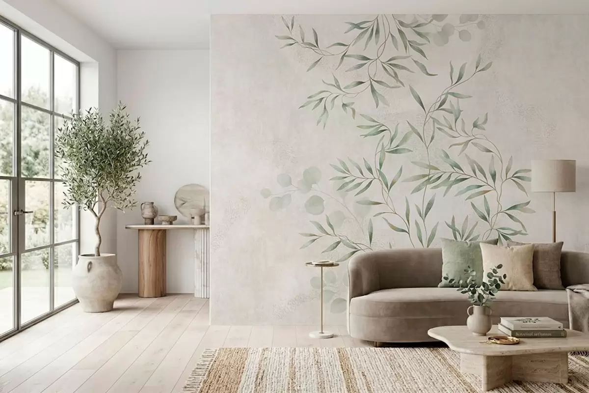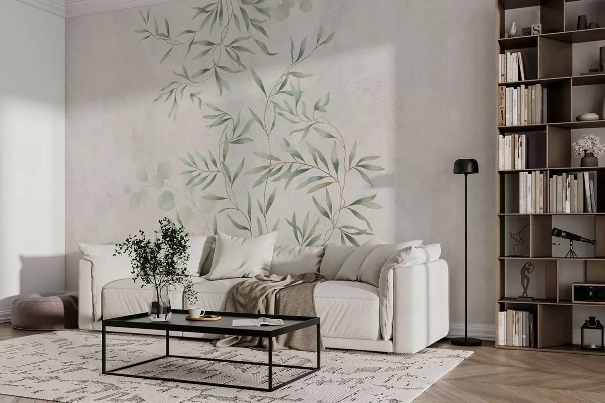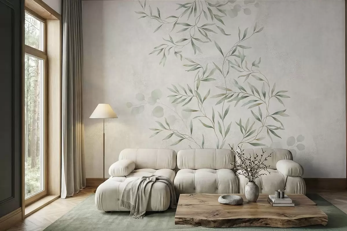 Papel tapiz Delikado estampado botánico con ramas finas sobre un fondo claro Nr. w05424