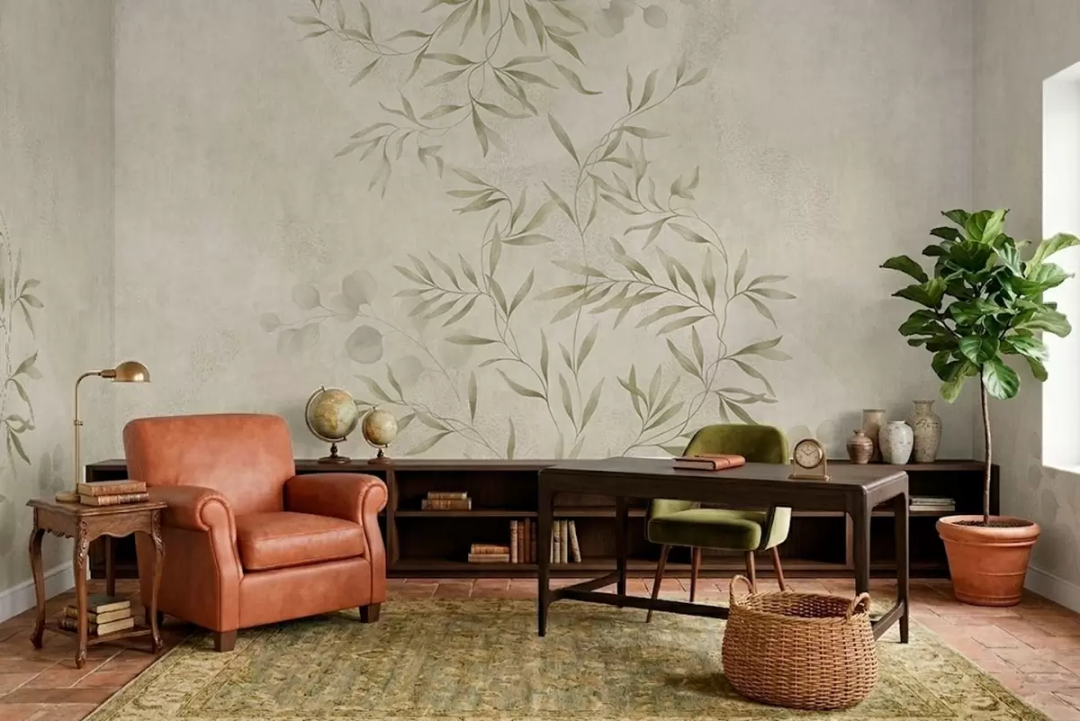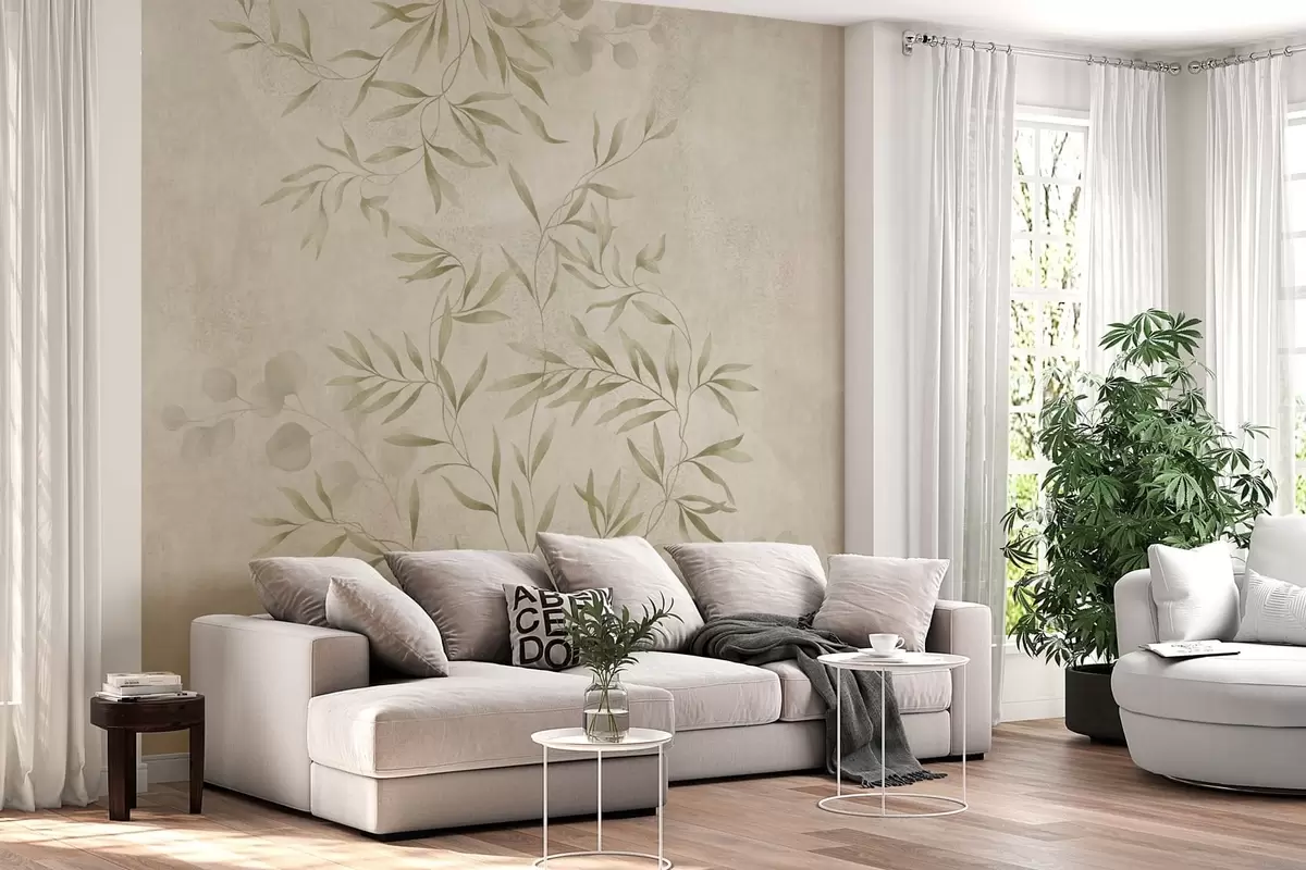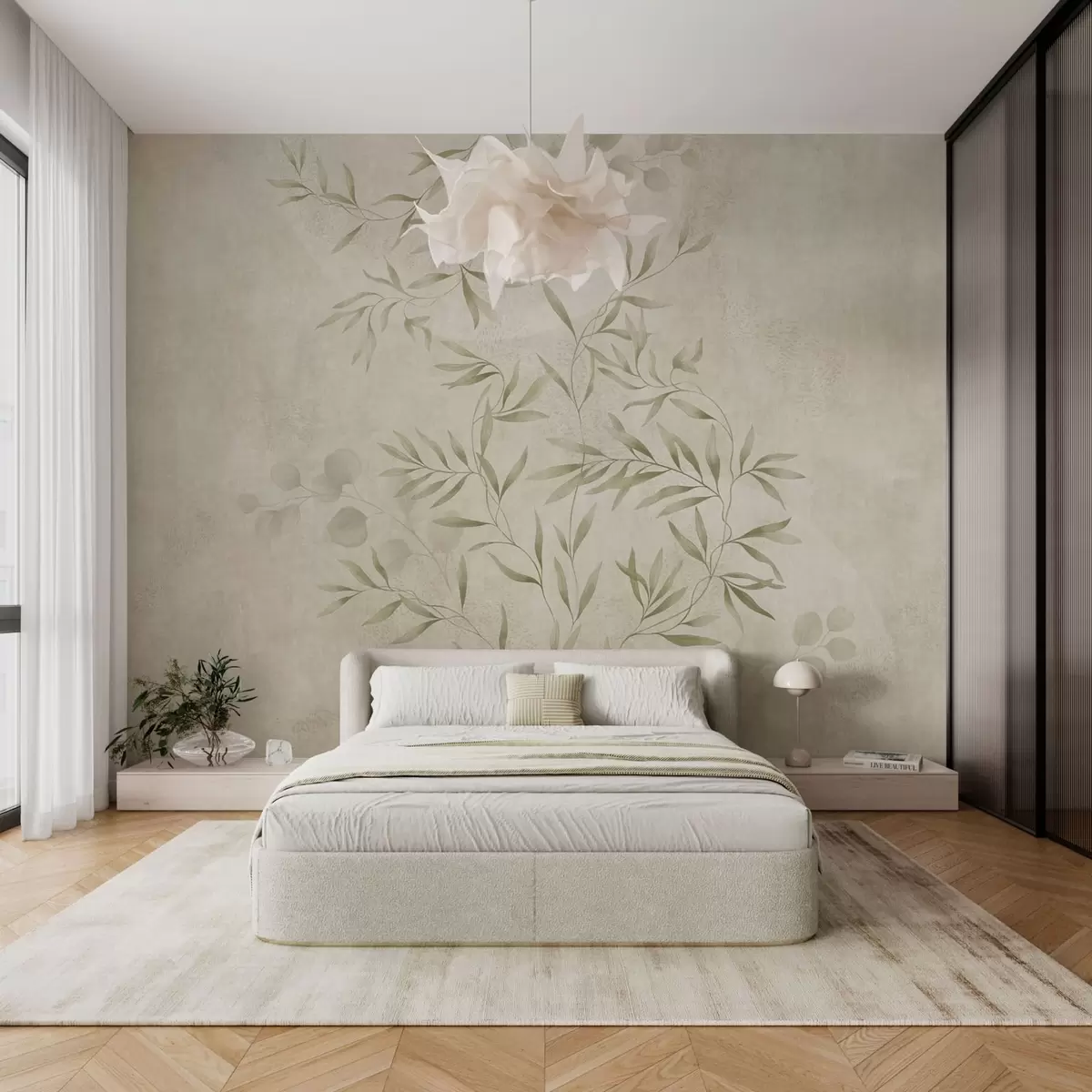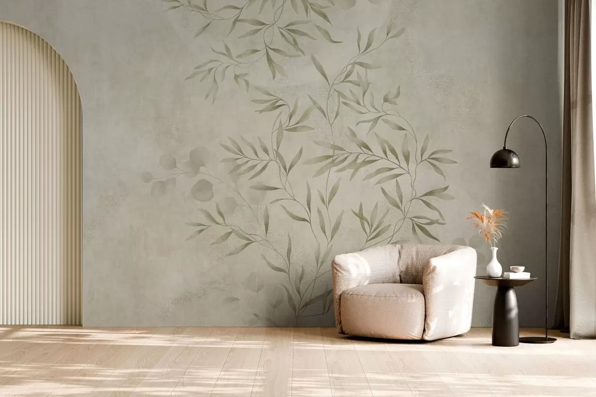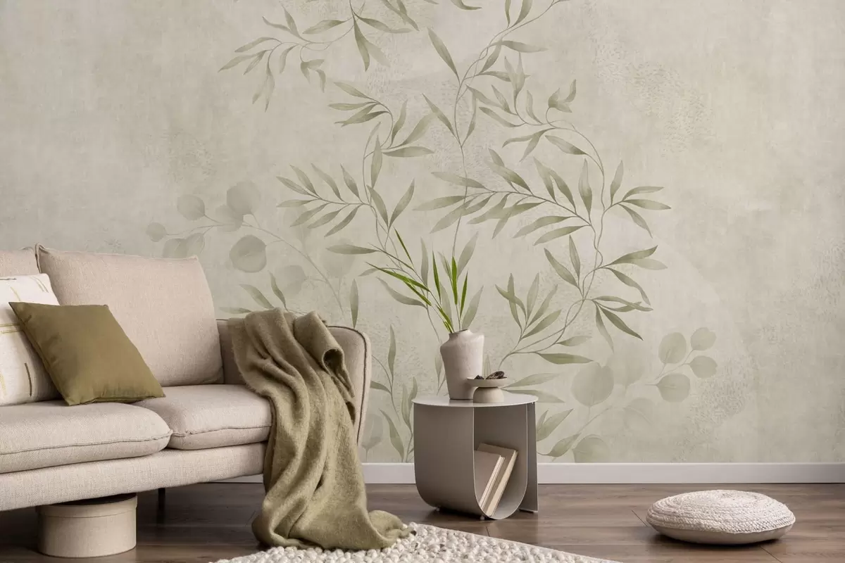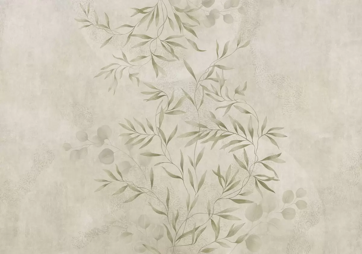 Papel tapiz Motivo botánico en tonos verde claro sobre un fondo texturizado Nr. w05424v1