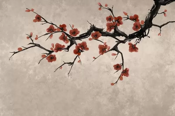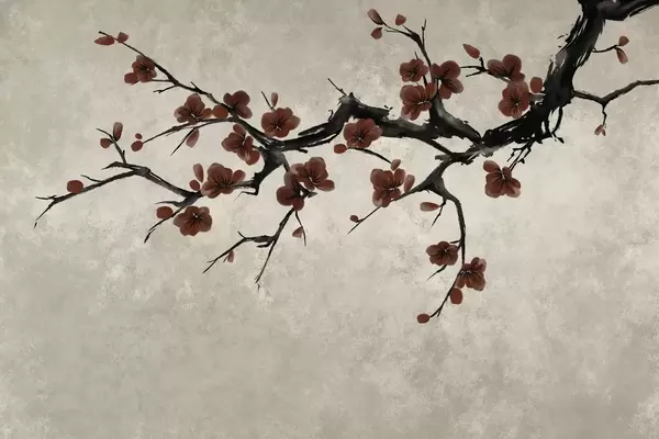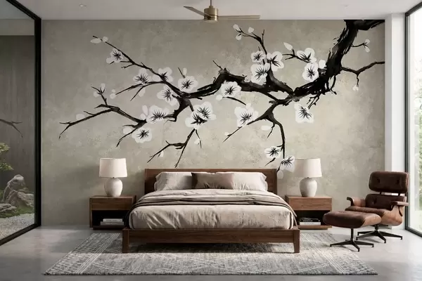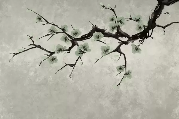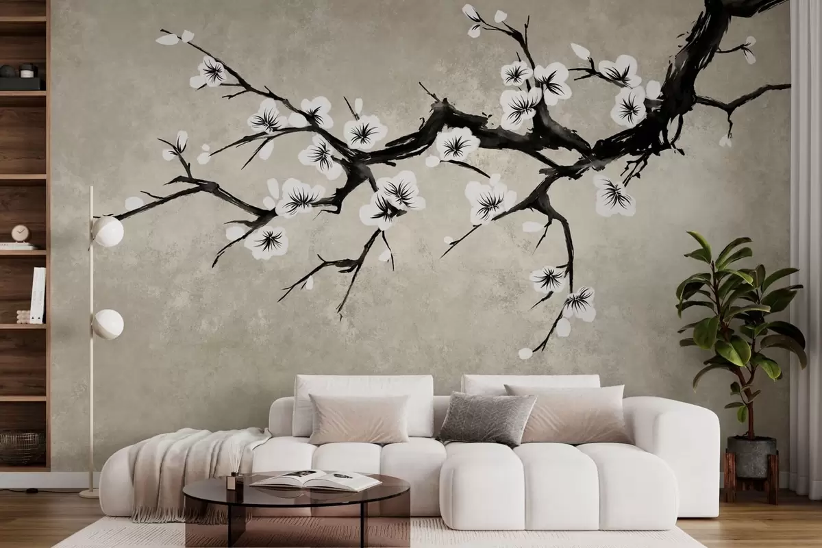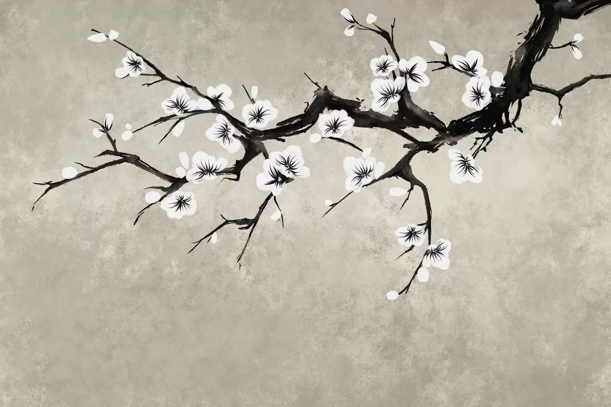 Papel tapiz Rama con flores blancas en estilo minimalista Nr. w05425