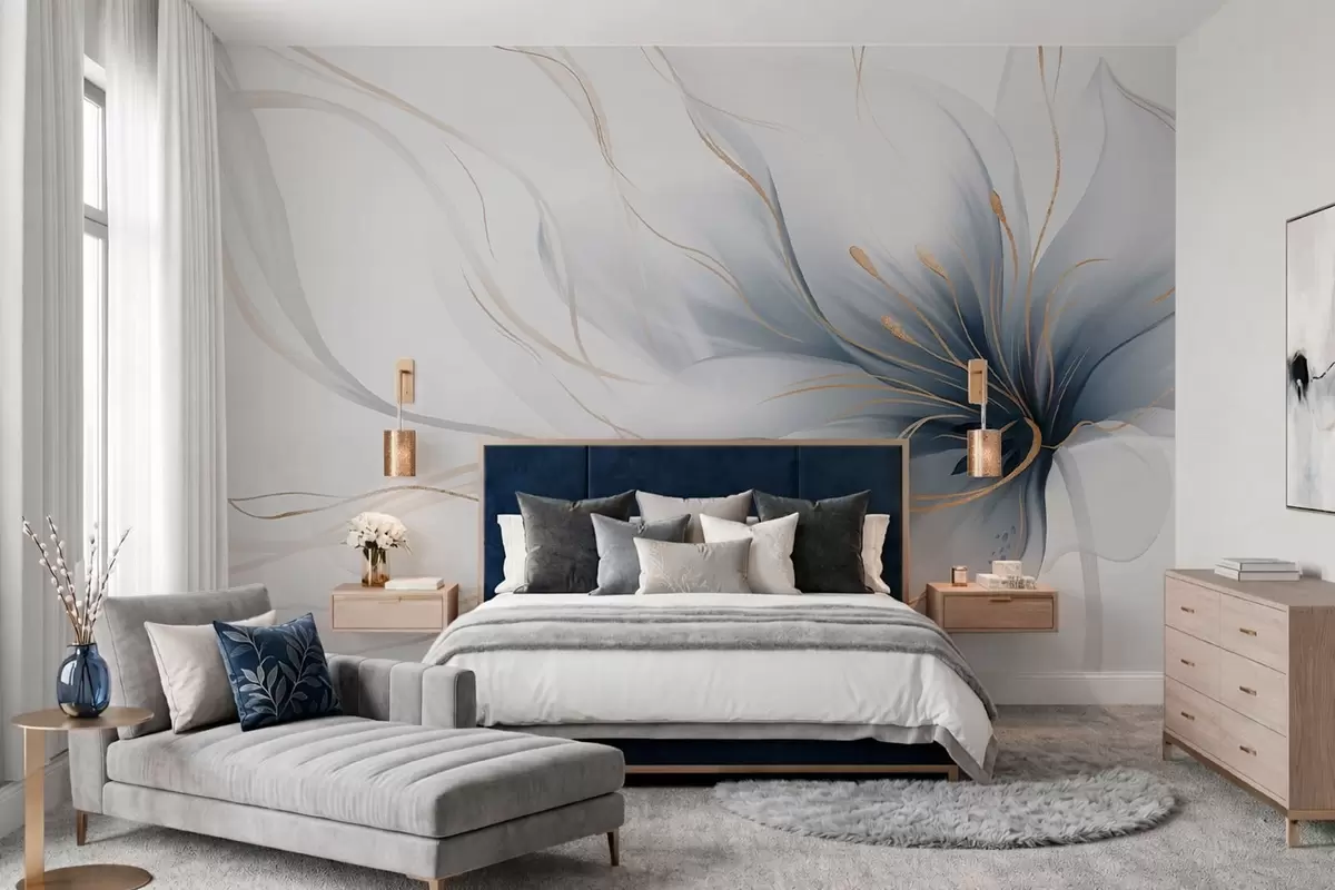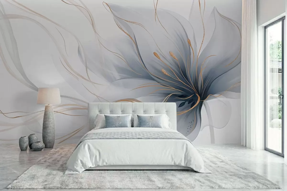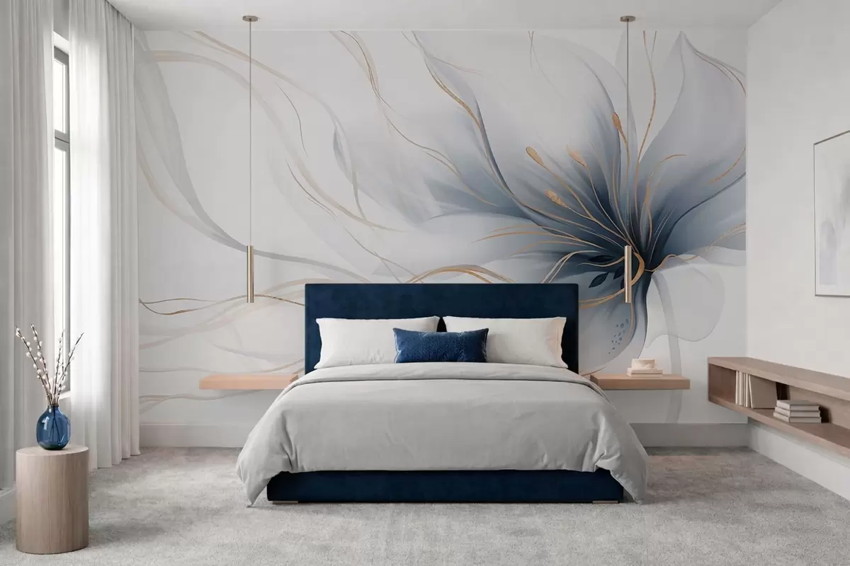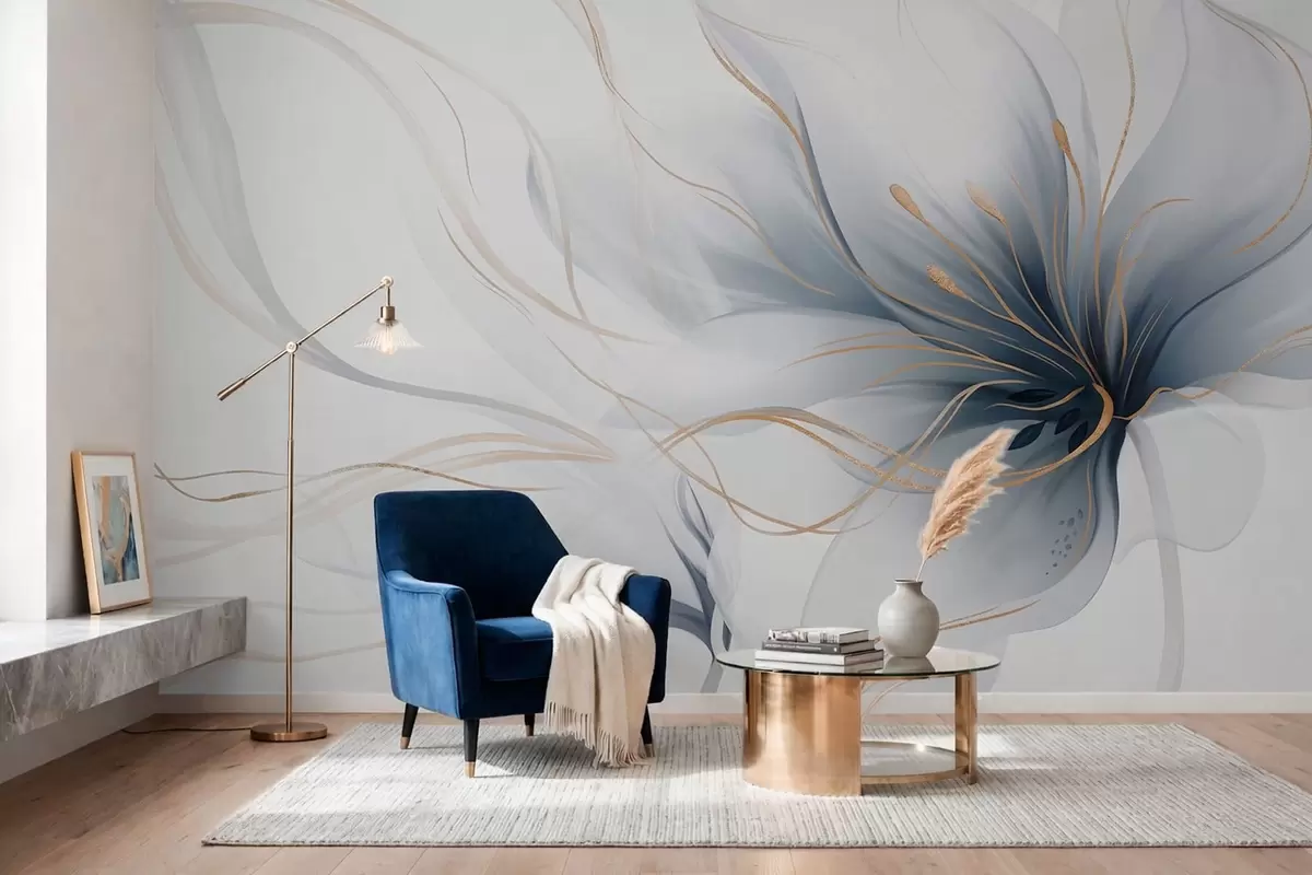 Papel tapiz Una flor azul abstracta con líneas fluidas al estilo del arte fluido Nr. w05428