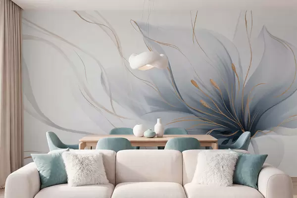 Papel tapiz Una flor azul abstracta con líneas fluidas al estilo del arte fluido Nr. w05428