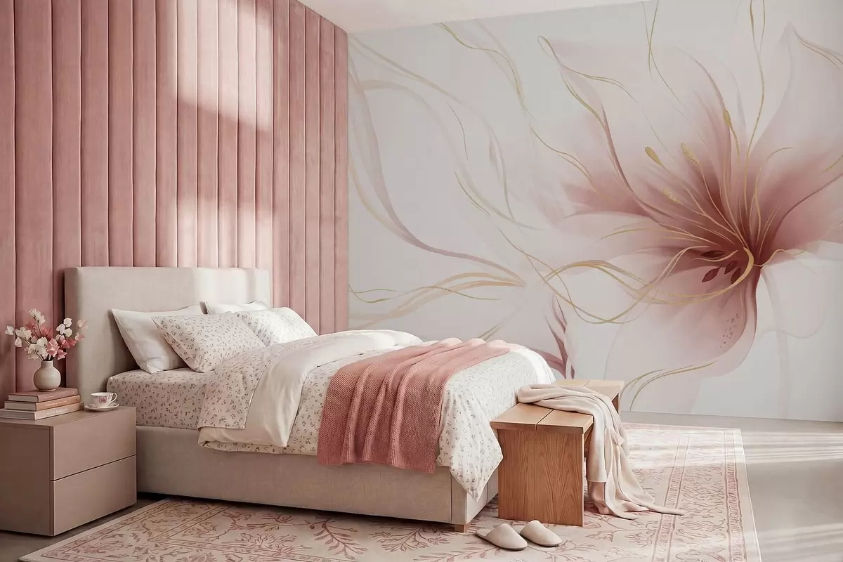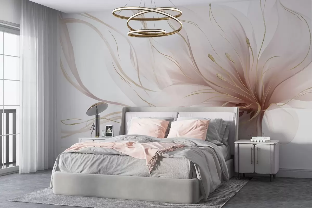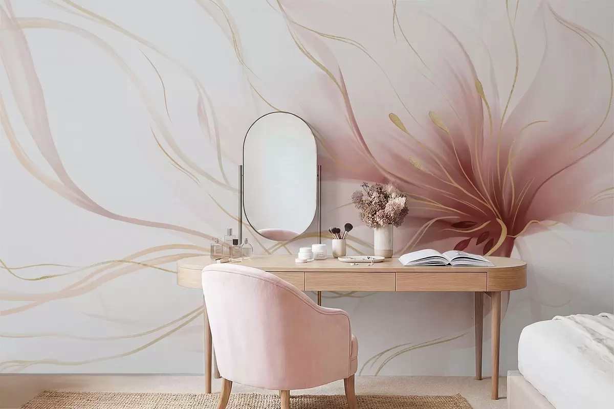 Papel tapiz Una flor rosa abstracta con líneas fluidas al estilo del arte fluido Nr. w05428v1