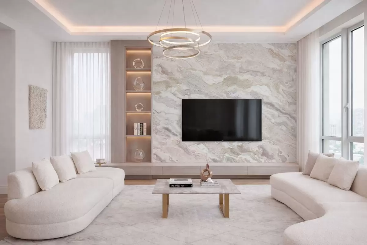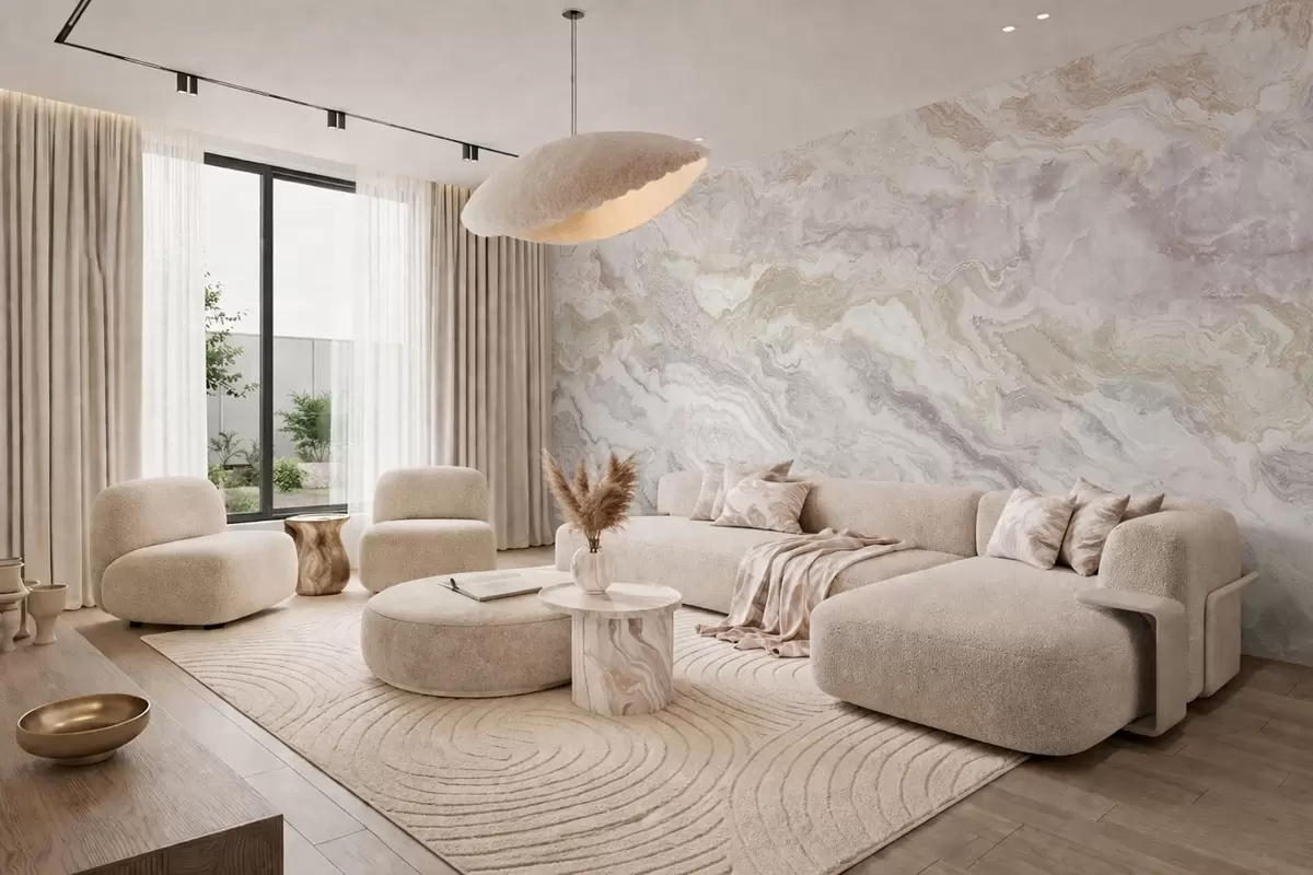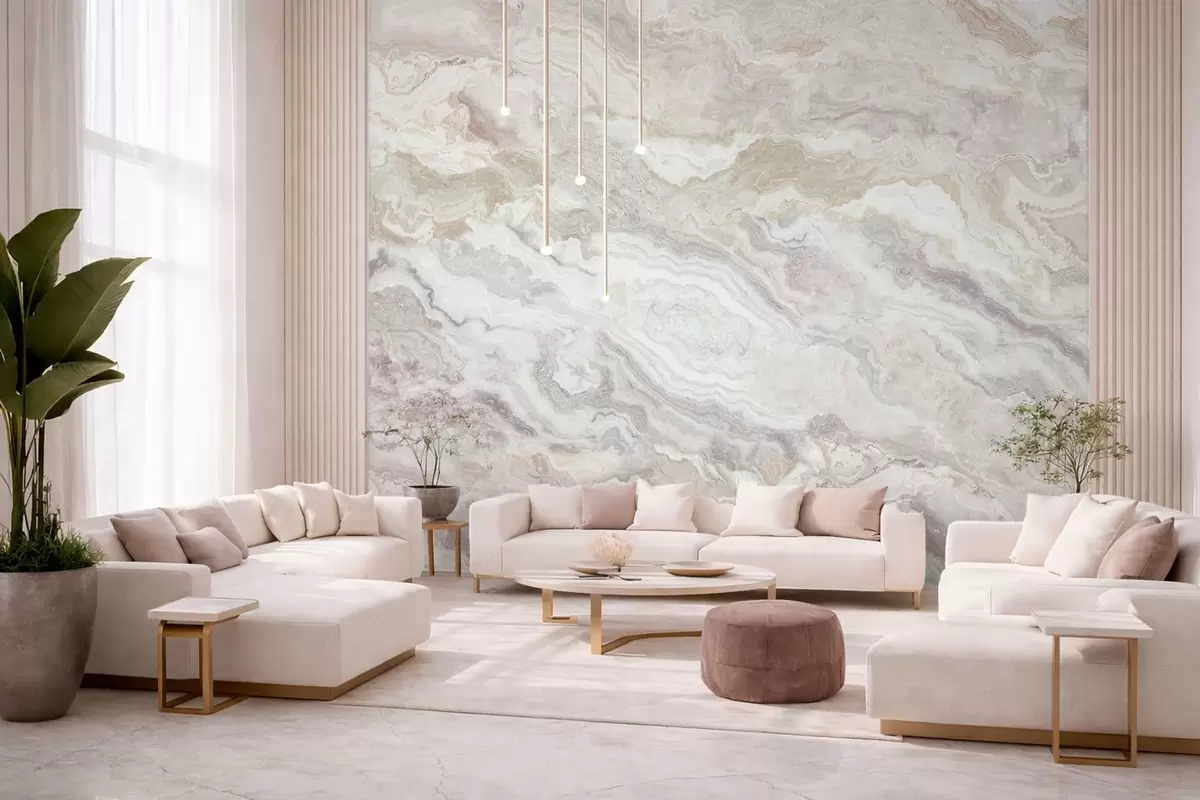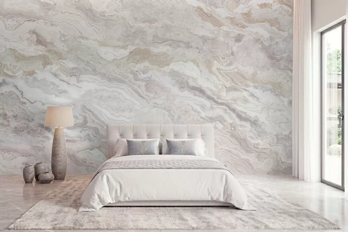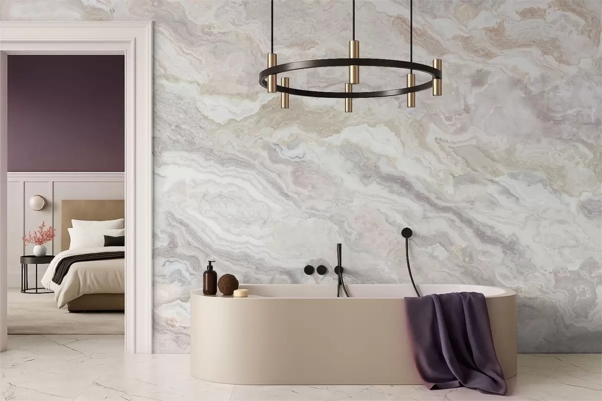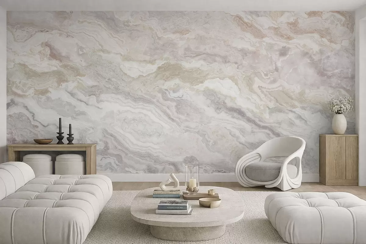 Papel tapiz Ónix claro con capas fluidas en tonos beige y gris Nr. w05430