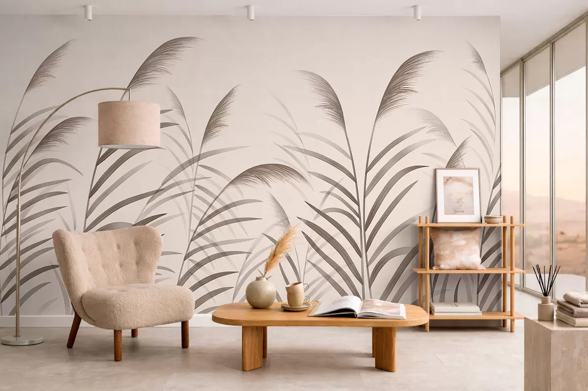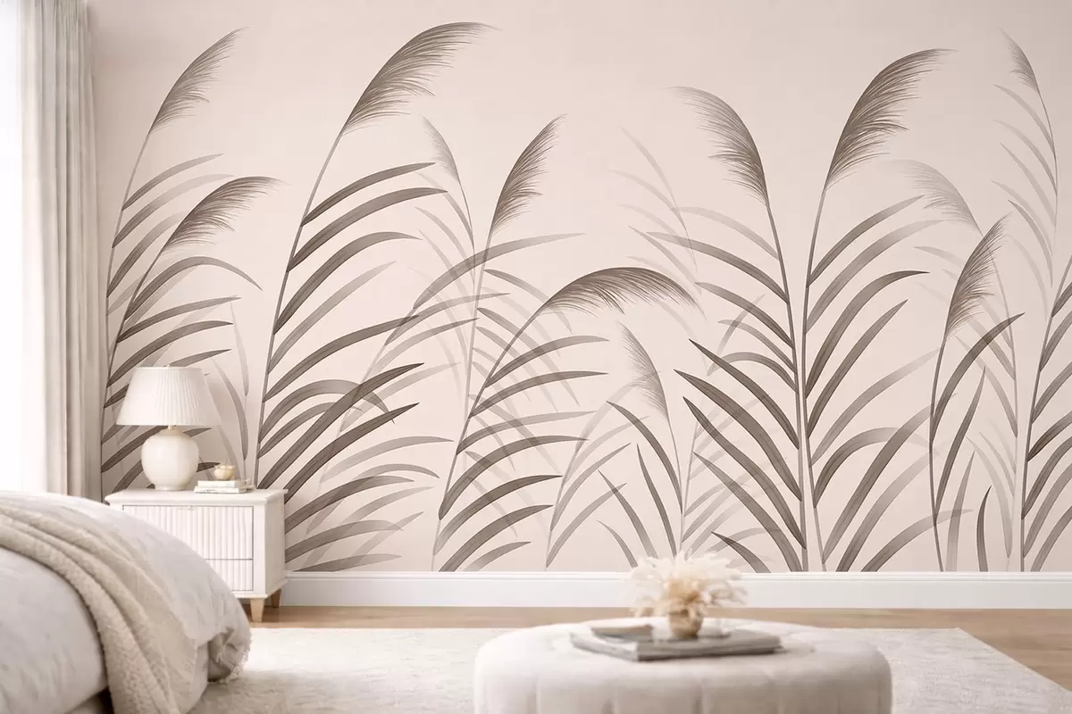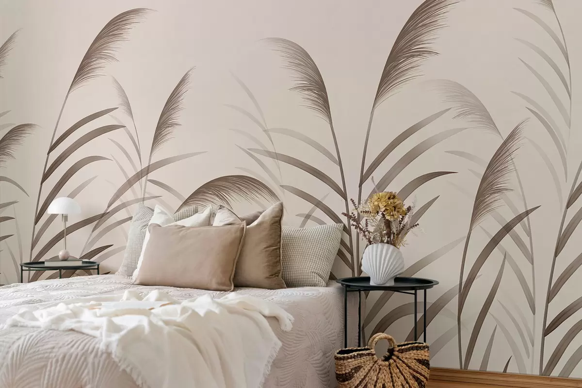 Papel tapiz Siluetas minimalistas de caña en tonos beige Nr. w05432