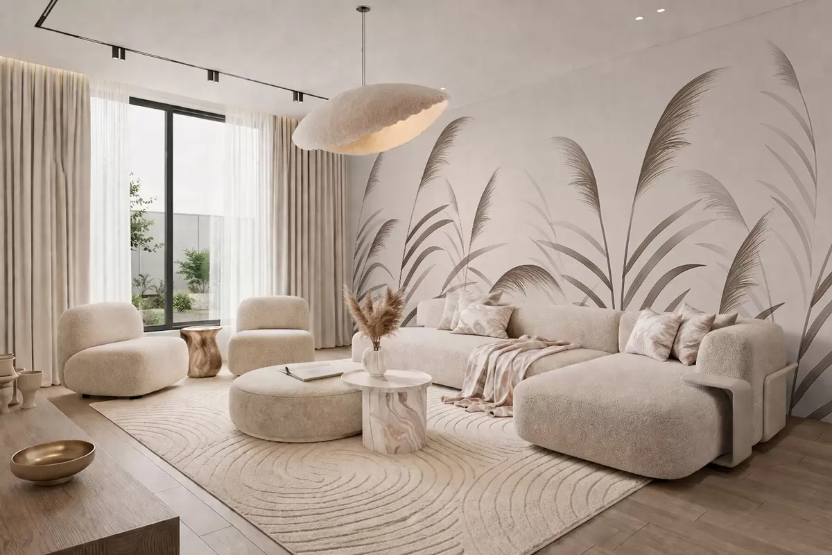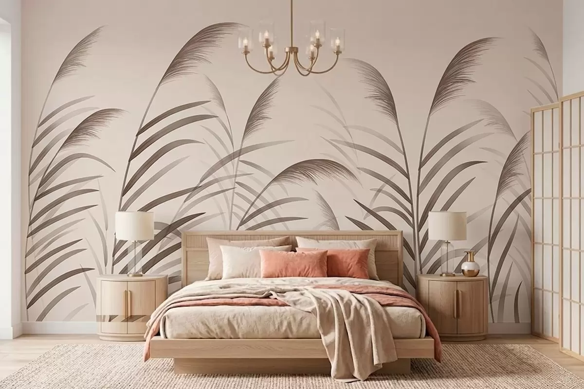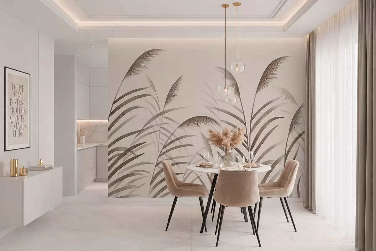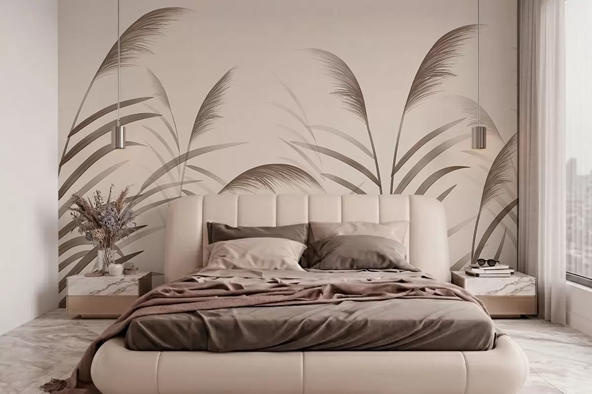 Papel tapiz Siluetas minimalistas de caña en tonos beige Nr. w05432