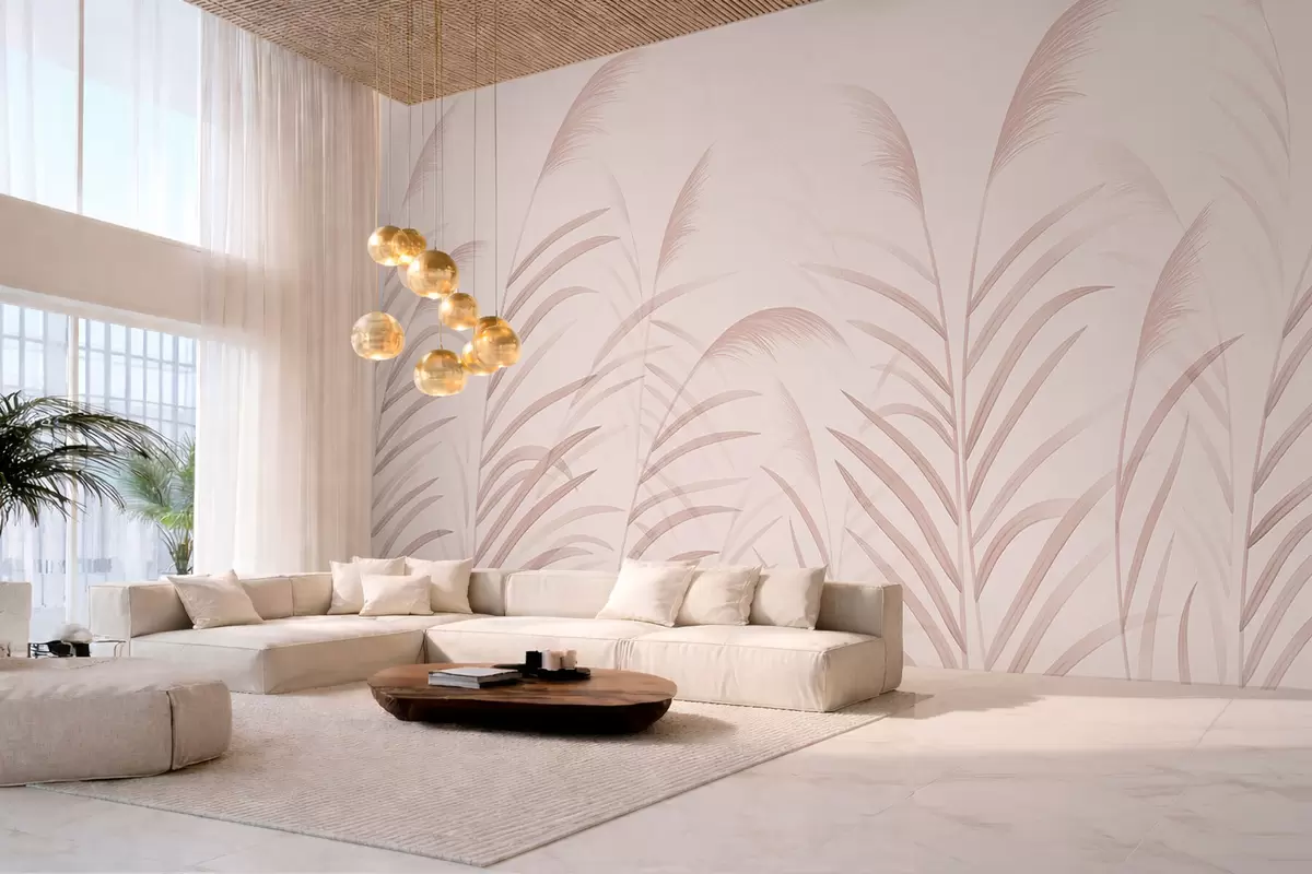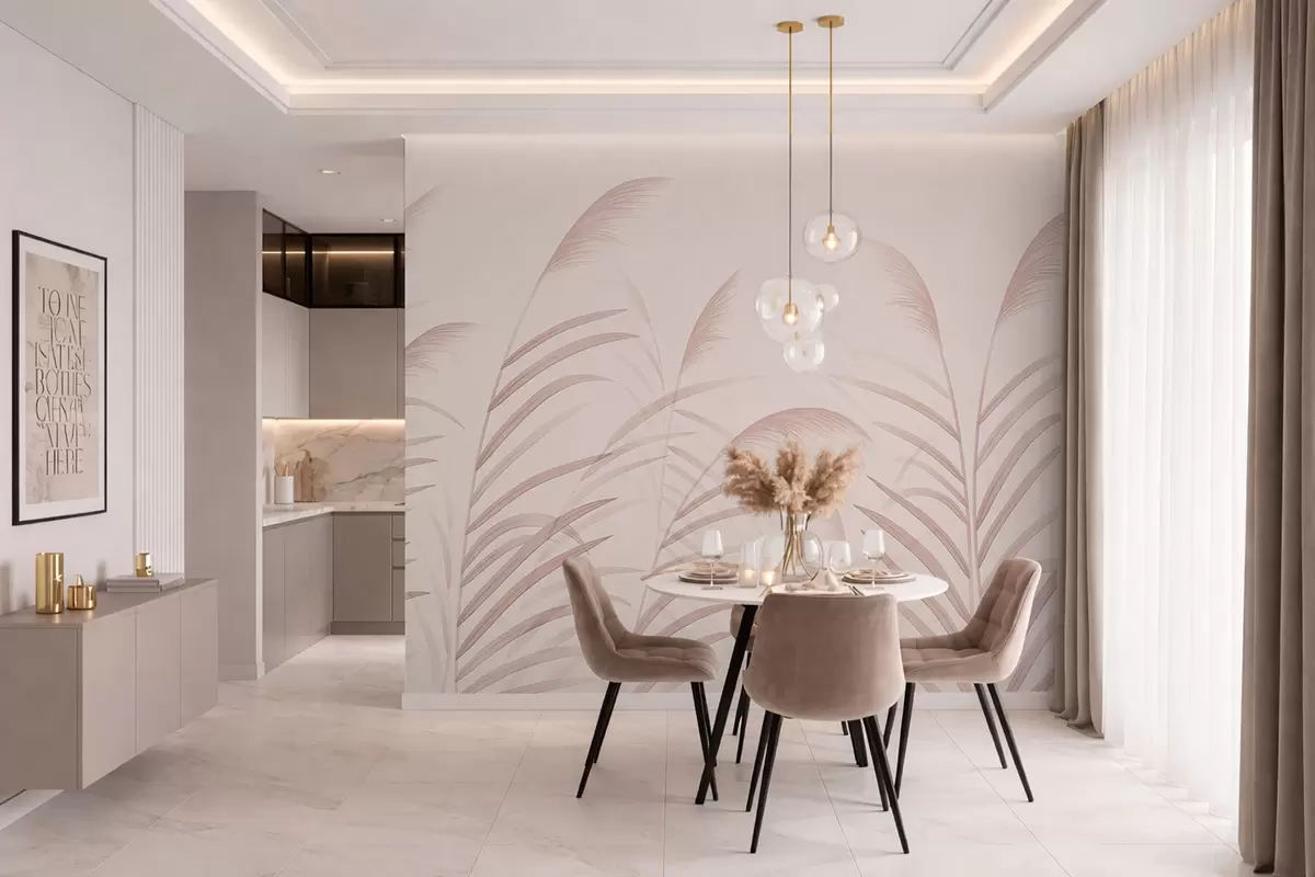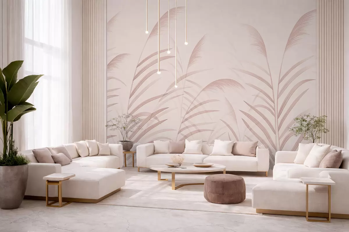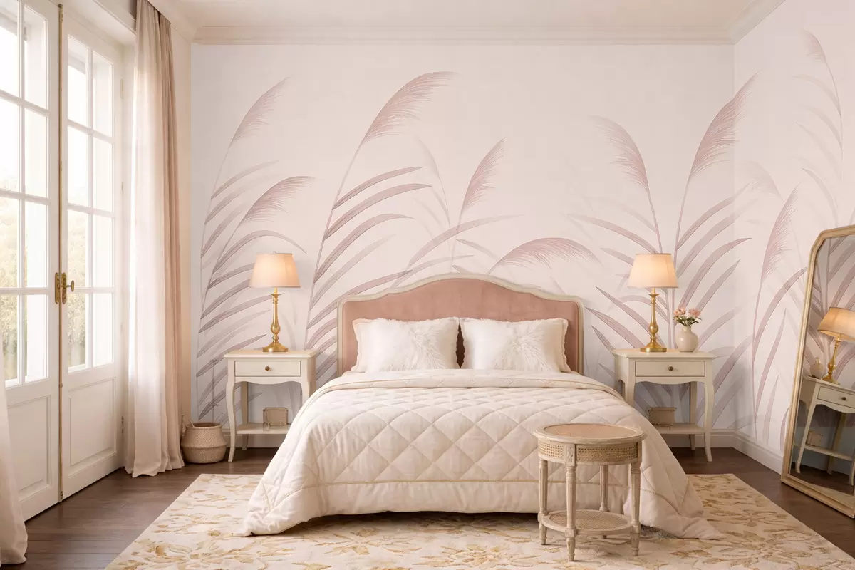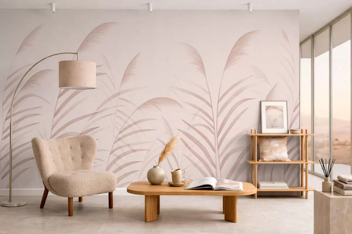 Papel tapiz Hierbas minimalistas en suaves tonos rosados Nr. w05432v2