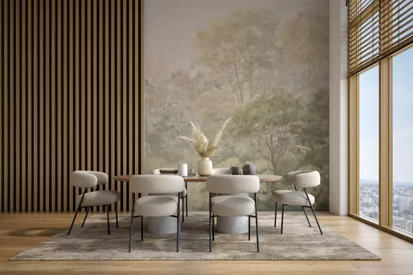 Papel tapiz Paisaje forestal de estilo vintage en tonos verdes apagados Nr. w05433