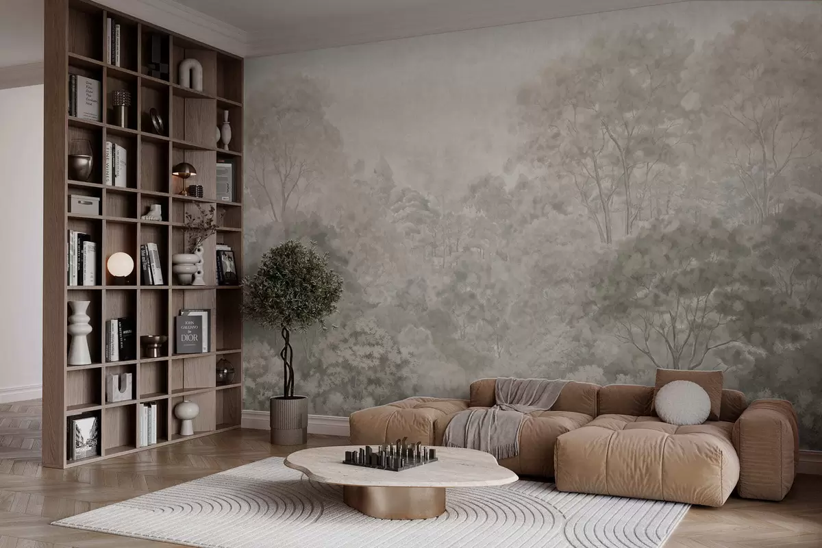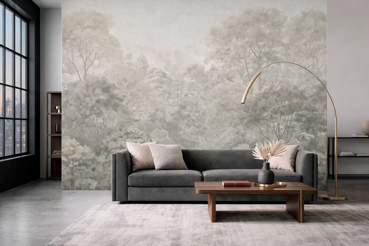 Papel tapiz Paisaje forestal antiguo en tonos pastel Nr. w05433v2
