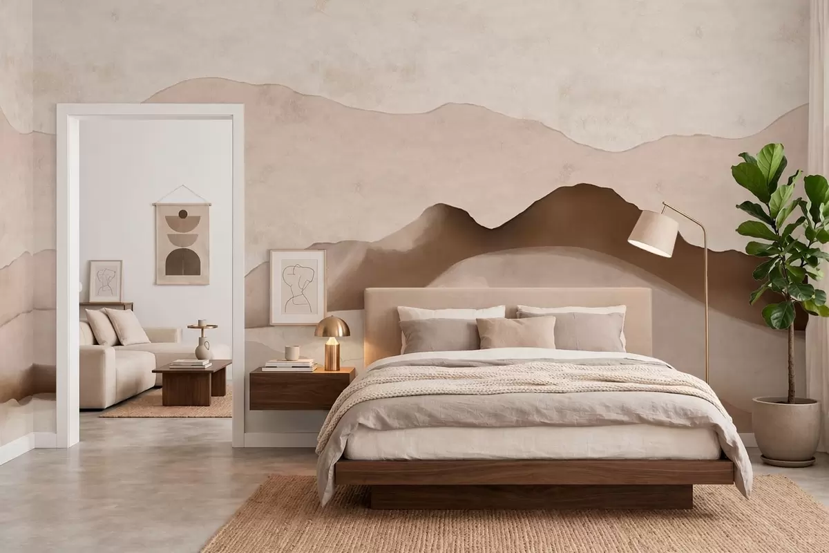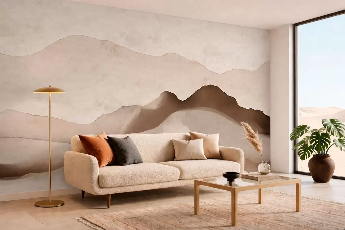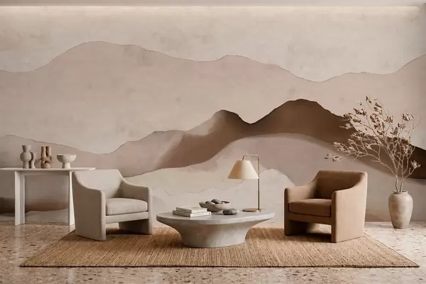 Papel tapiz Montañas abstractas en los estilos «Japandi» y minimalista Nr. w05434