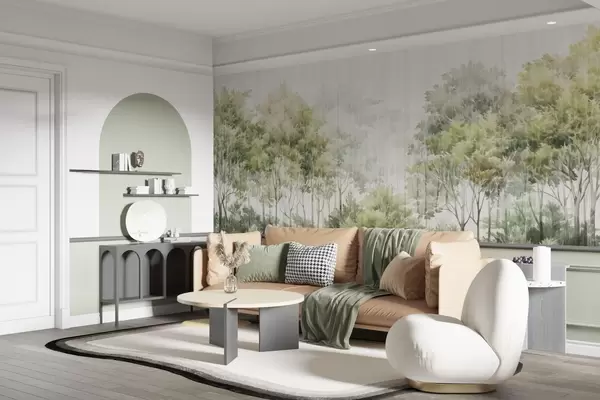 Papel tapiz Bosque frondoso y líneas Nr. w05442
