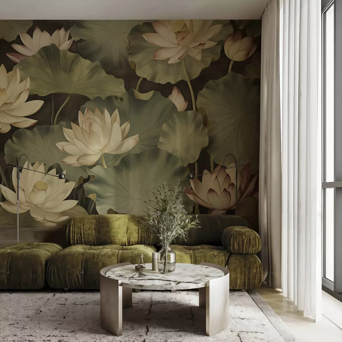 Papel tapiz Flores de loto vintage Nr. w05445