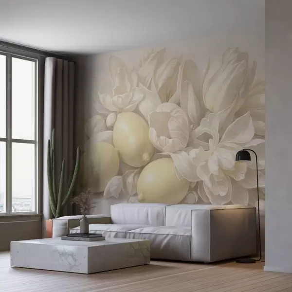 Papel tapiz Delicado ramo floral con limones Nr. w05449