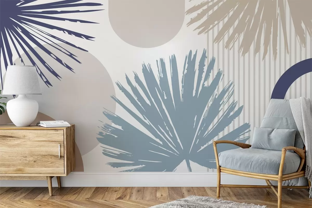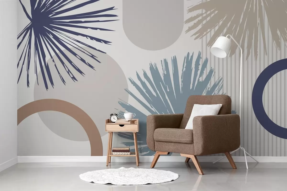 Papel tapiz Abstracción con siluetas vegetales y geométricas Nr. w05505v1