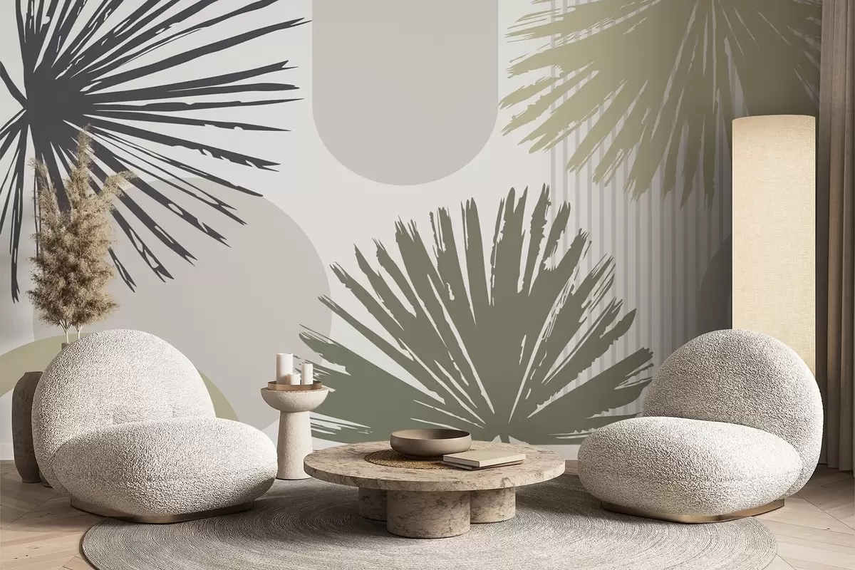 Papel tapiz Abstracción con siluetas vegetales y geométricas Nr. w05505v2