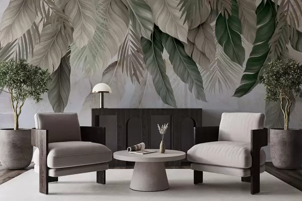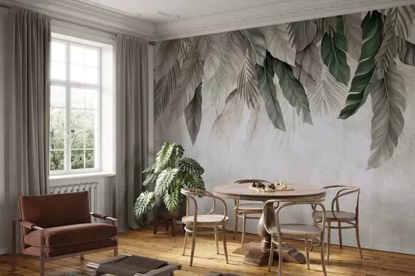 Papel tapiz Hojas tropicales colgantes sobre hormigón Nr. w05521