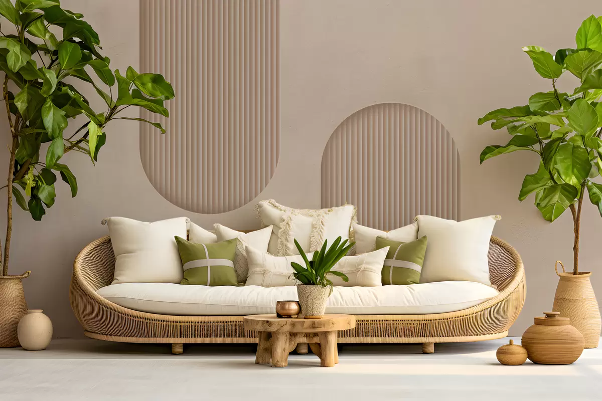 Papel tapiz Papel pintado texturizado Art Déco en cálidos tonos beige. Imitación de arcos volumétricos. Nr. w08048