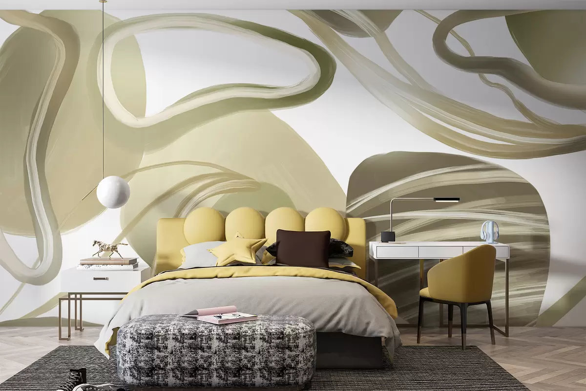 Papel tapiz Formas y curvas abstractas arremolinadas en tonos beige que crean una composición dinámica y fluida Nr. w08279