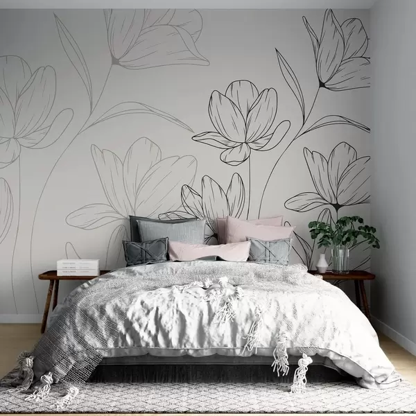 Papel tapiz Fondo claro, grandes flores negras Nr. w08365v1