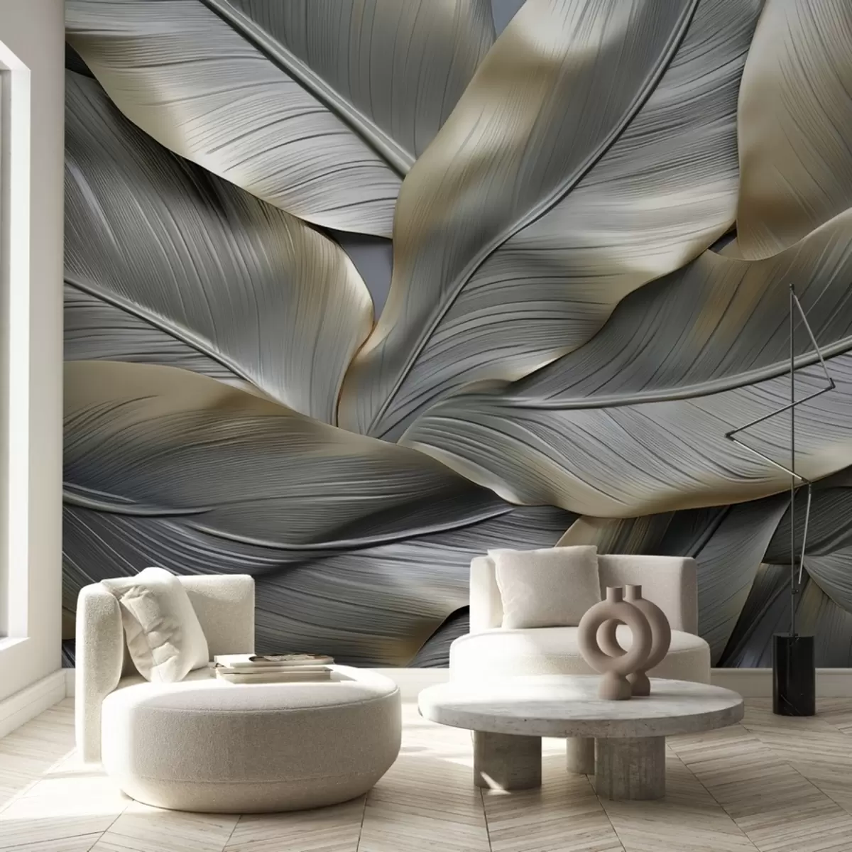 Papel tapiz Hojas de plátano volumétricas Nr. w08394