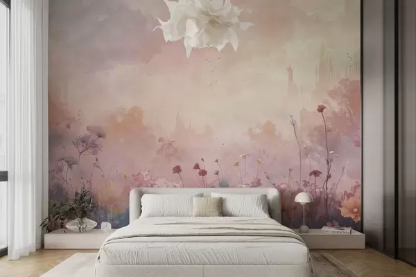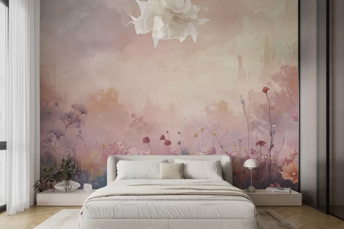 Papel tapiz Flores silvestres sobre fondo de silueta de castillo Nr. w08478