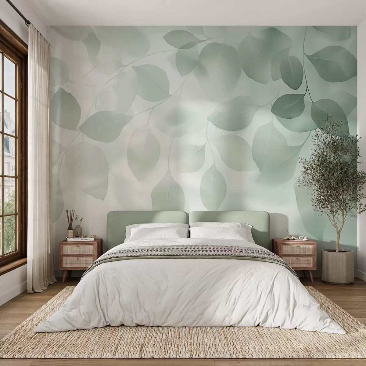 Papel tapiz Abstracción floral de hojas en tonos verdes Nr. w08492v1