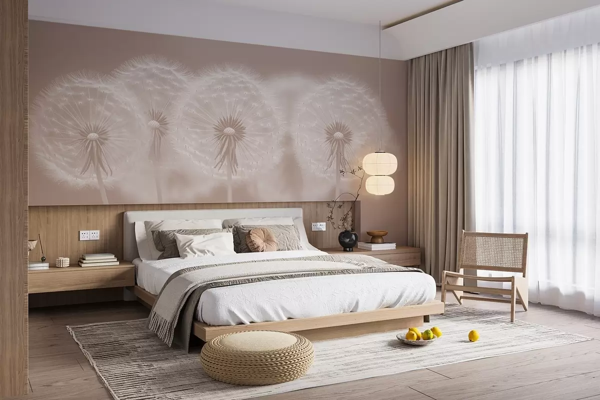 Papel tapiz Delicados dientes de león rosas sobre un fondo natural rosa Nr. w08498v1