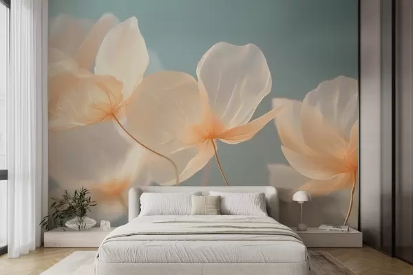 Papel tapiz Pétalos de loto, una delicada composición con fondo azul Nr. w08500