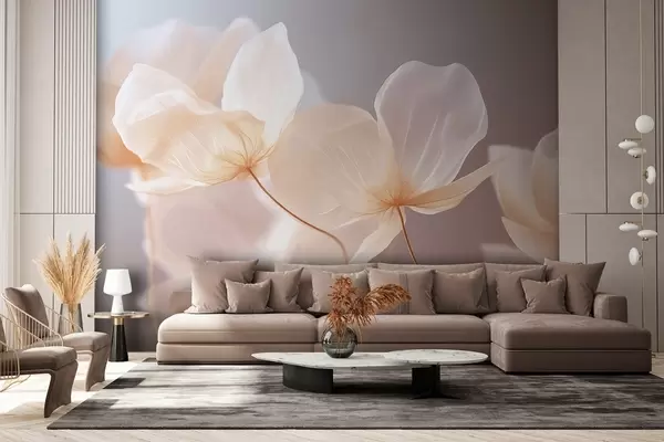Papel tapiz Pétalos de loto, una delicada composición con fondo rosa Nr. w08500v1