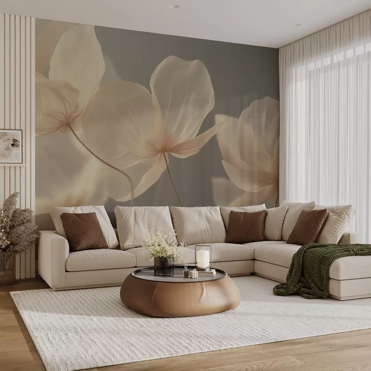 Papel tapiz Pétalos de loto, una delicada composición con fondo gris Nr. w08500v2