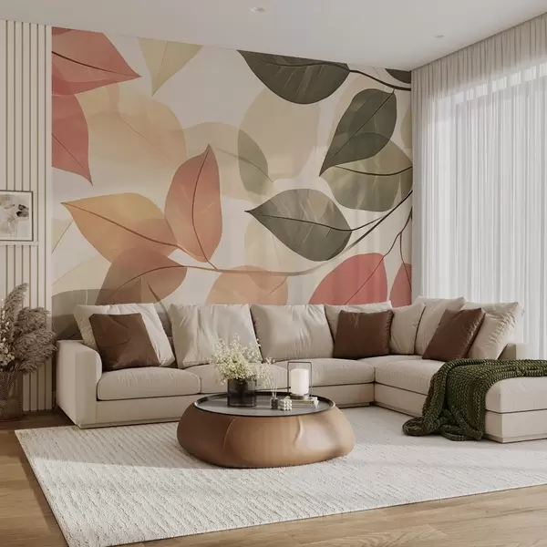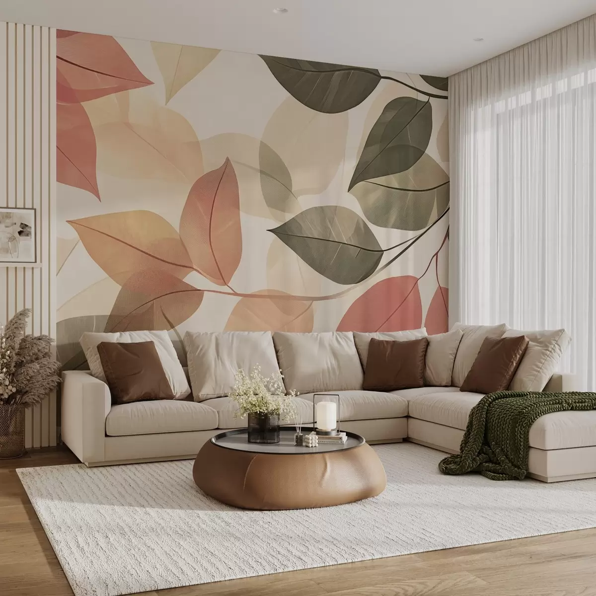 Papel tapiz Ramas de hojas en tonos rojos y verdes Nr. w08502