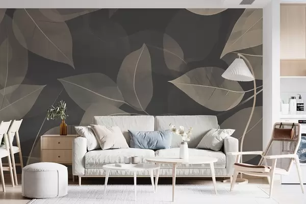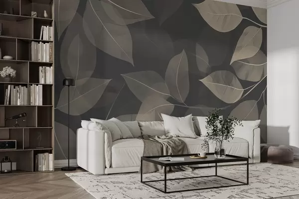 murales de pared Ramas de hojas en tonos azules y grises w08502v1