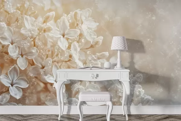 murales de pared Delicadas flores blancas de color lila con un suave fondo amarillo difuminado w08533