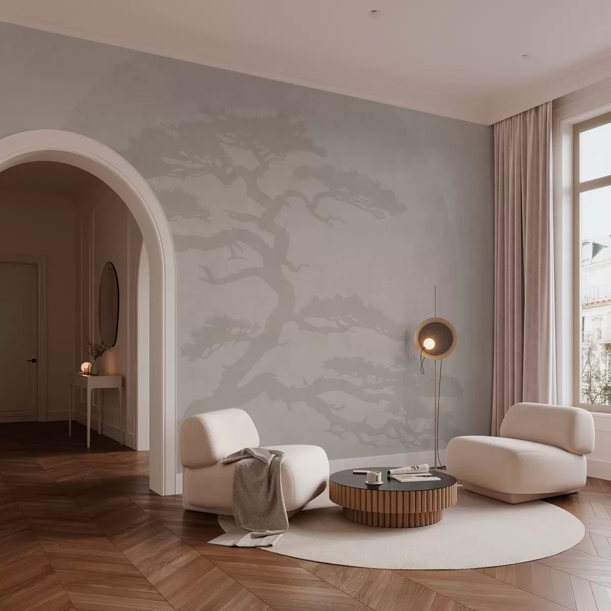 Papel tapiz Árbol bonsái japonés y geometría de fondo grunge Nr. w08554v1