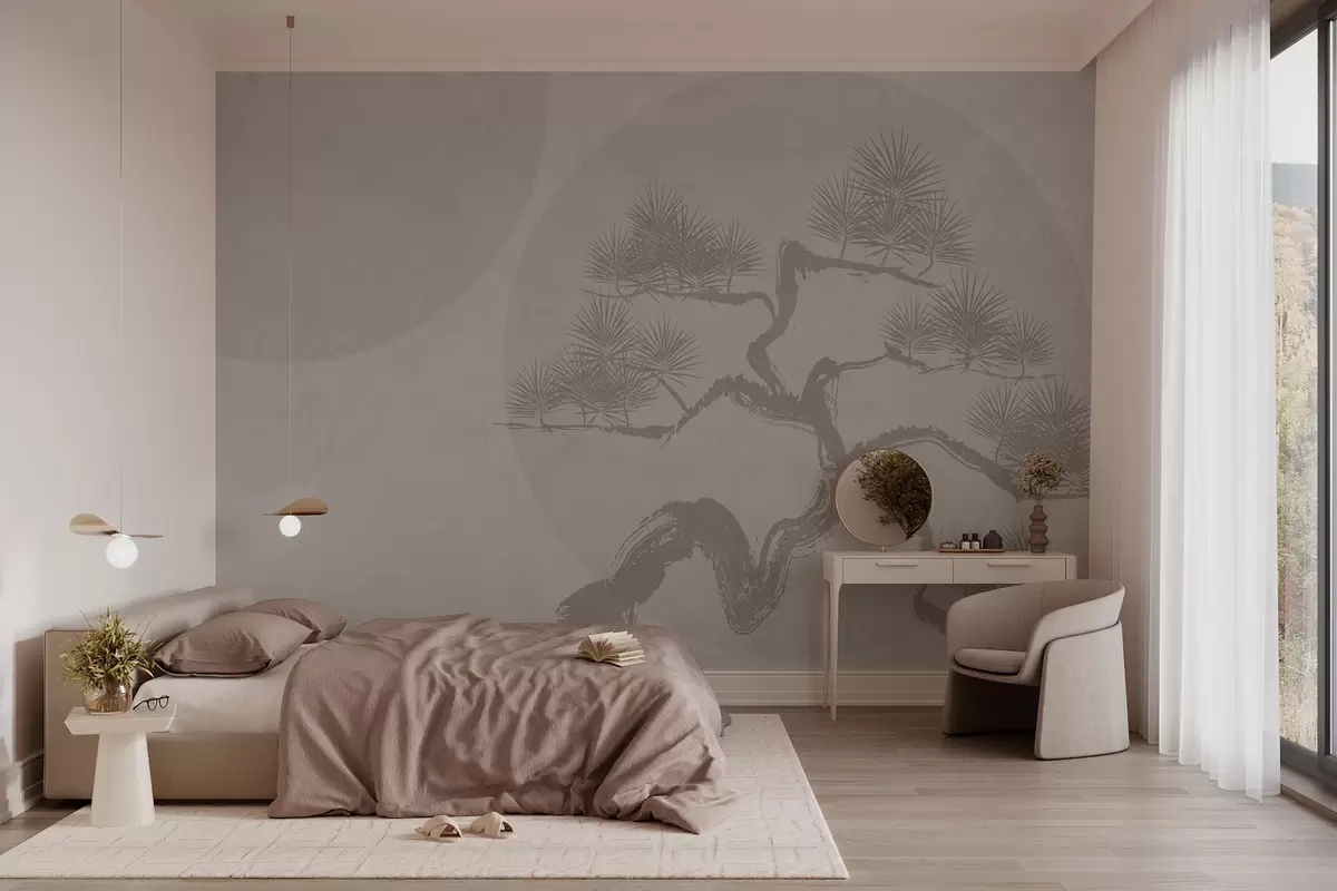 Papel tapiz Bonsai japonés minimalismo geometría grunge fondo Nr. w08556