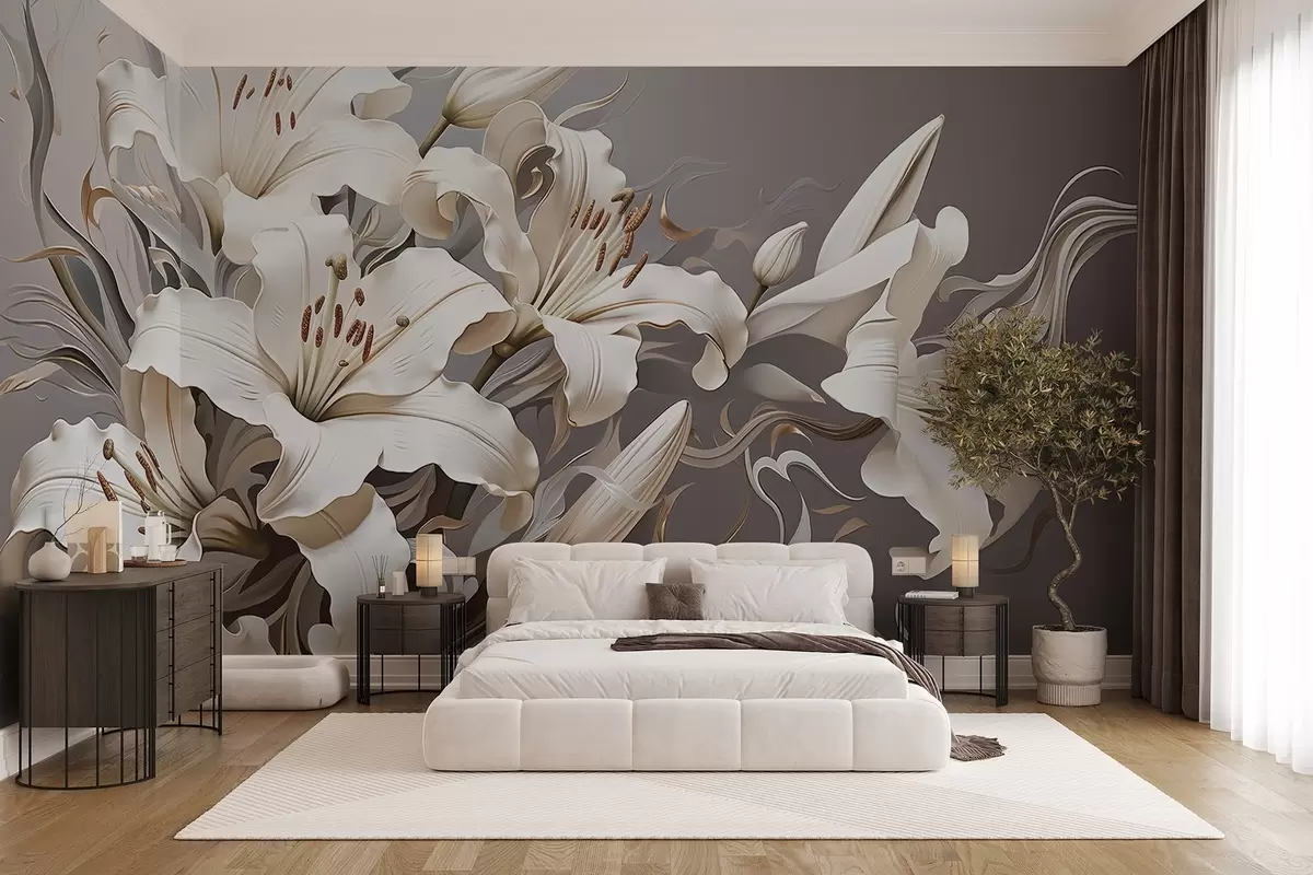 Papel tapiz Sofisticados lirios blancos en tonos pastel Nr. w08633v1