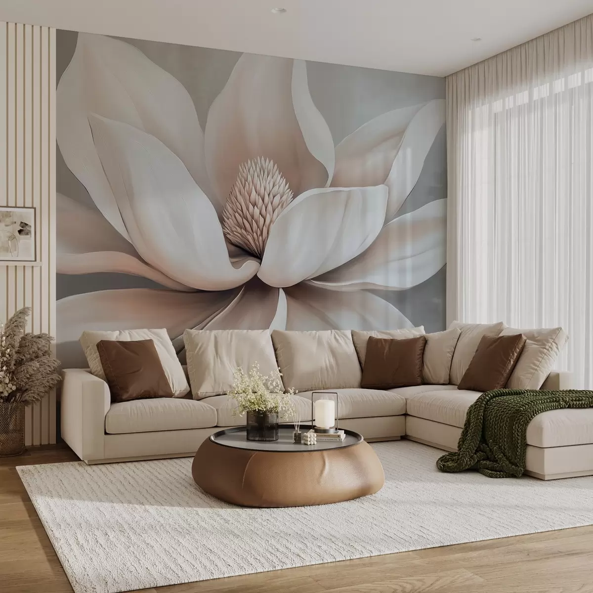 Papel tapiz Elegante flor de magnolia con pétalos largos y suaves sobre un fondo gris suave Nr. w08705