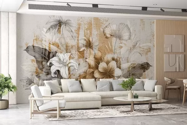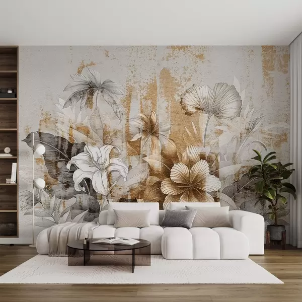 Papel tapiz Diseño vintage con flores y plantas exóticas Nr. w08767
