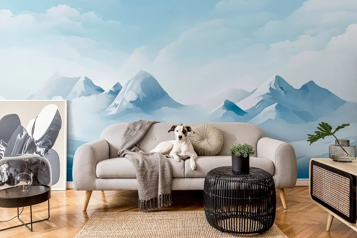Papel tapiz Nubes y montañas azules minimalistas, tiempo gélido Nr. w08811