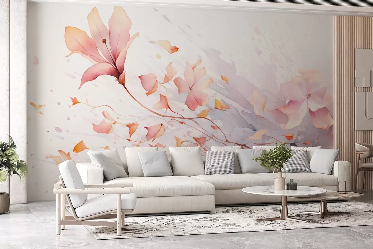 Papel tapiz Una flor con pétalos que caen revoloteando al viento en estilo acuarela Nr. w08821