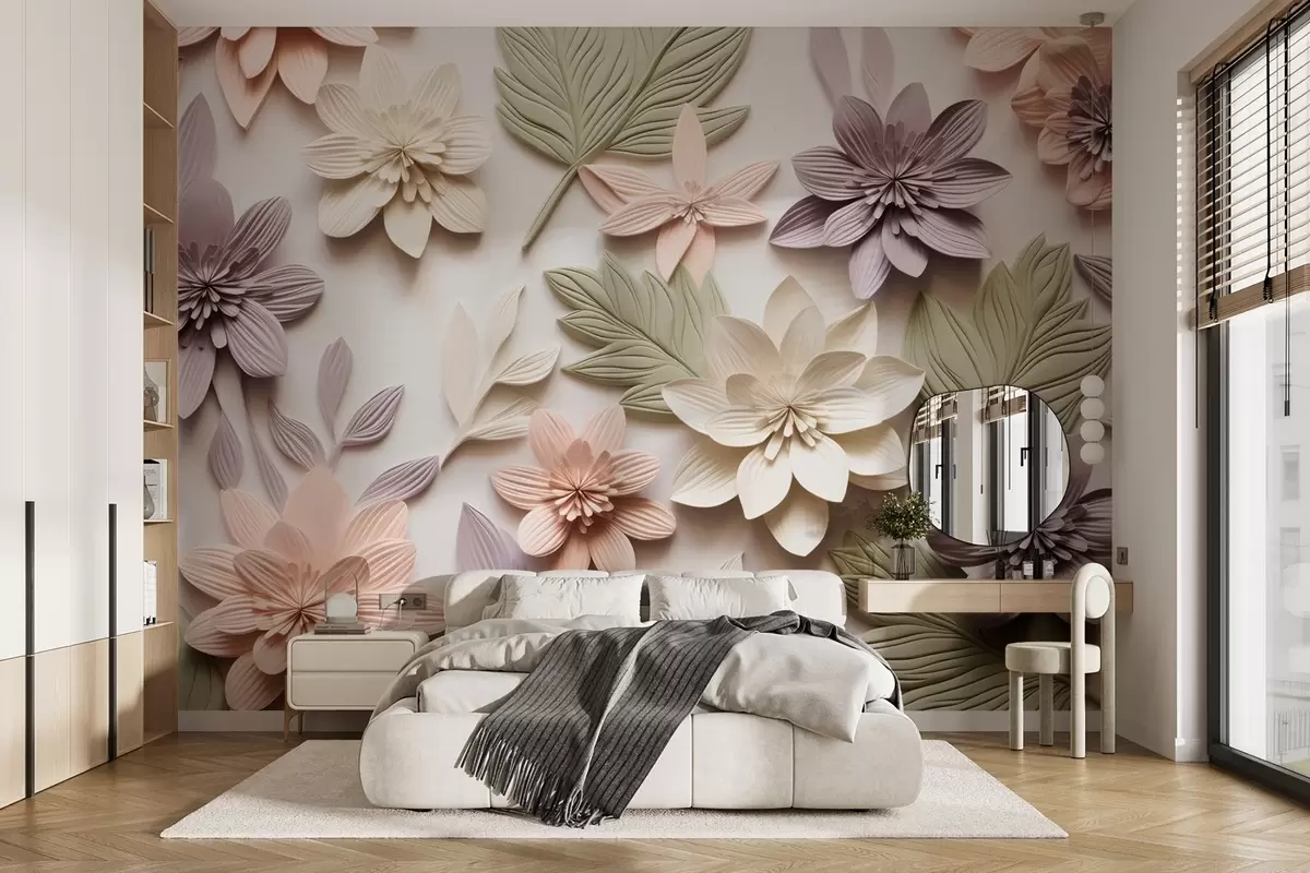 Papel tapiz relieve floral en 3D en forma de composición de papel Nr. w08958